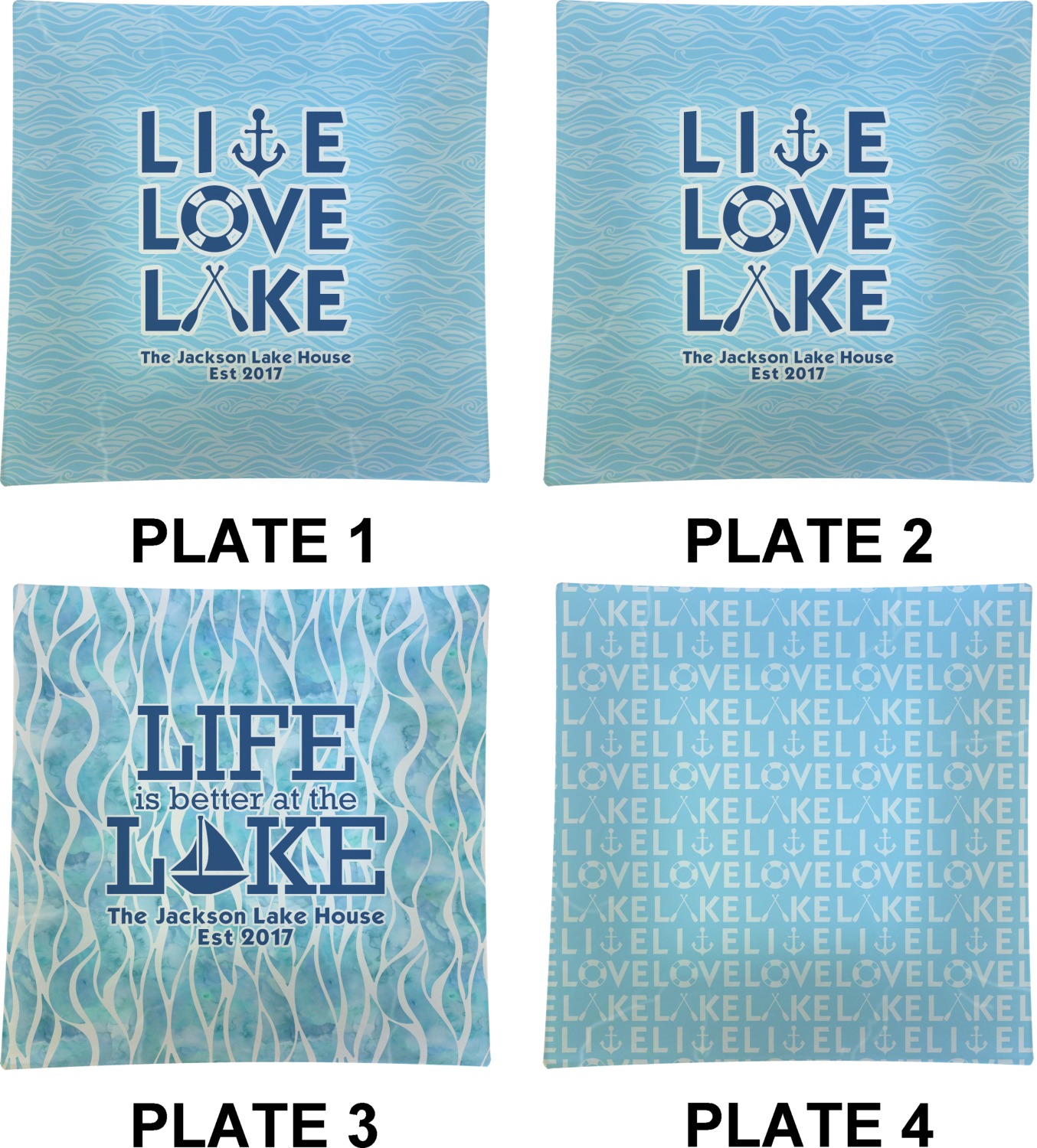 This design has a beautiful background with abstract waves that are a calming light blue. The main feature of this design is the quote. The quote used for this design says "Live Love Lake," but remember that we have many other lake house quotes to choose from. Underneath the quote you are able to put your personalization!