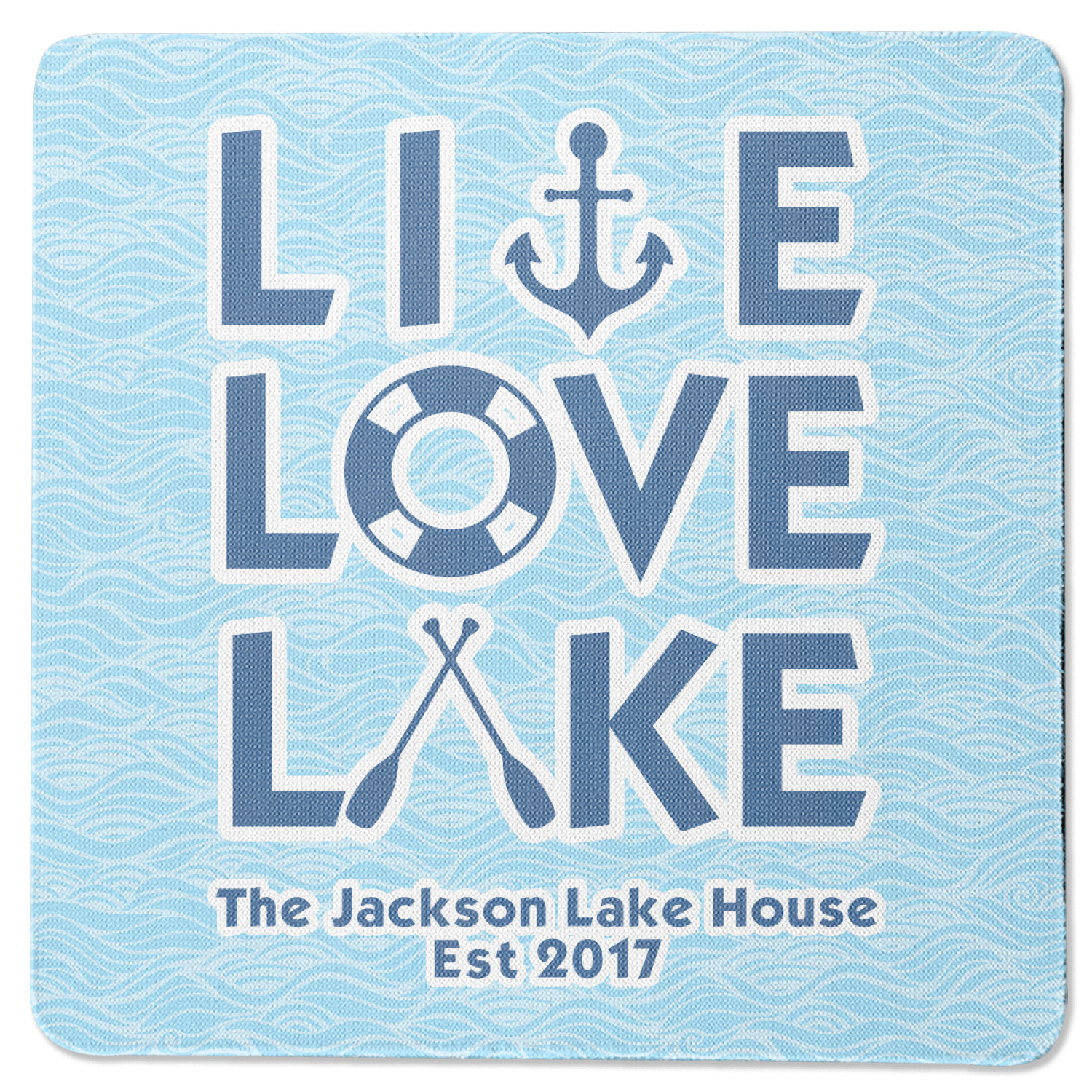 This design has a beautiful background with abstract waves that are a calming light blue. The main feature of this design is the quote. The quote used for this design says "Live Love Lake," but remember that we have many other lake house quotes to choose from. Underneath the quote you are able to put your personalization!