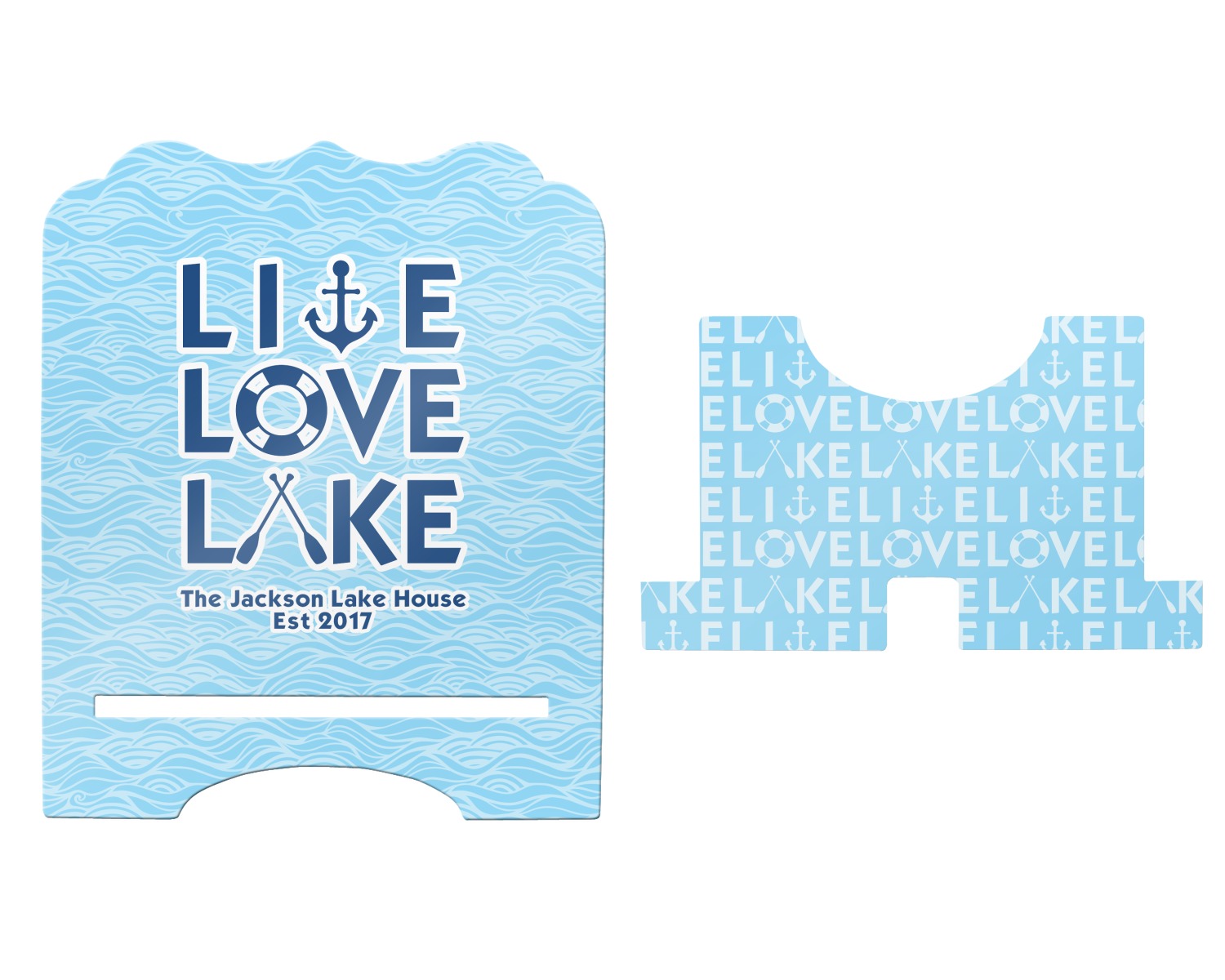 This design has a beautiful background with abstract waves that are a calming light blue. The main feature of this design is the quote. The quote used for this design says "Live Love Lake," but remember that we have many other lake house quotes to choose from. Underneath the quote you are able to put your personalization!