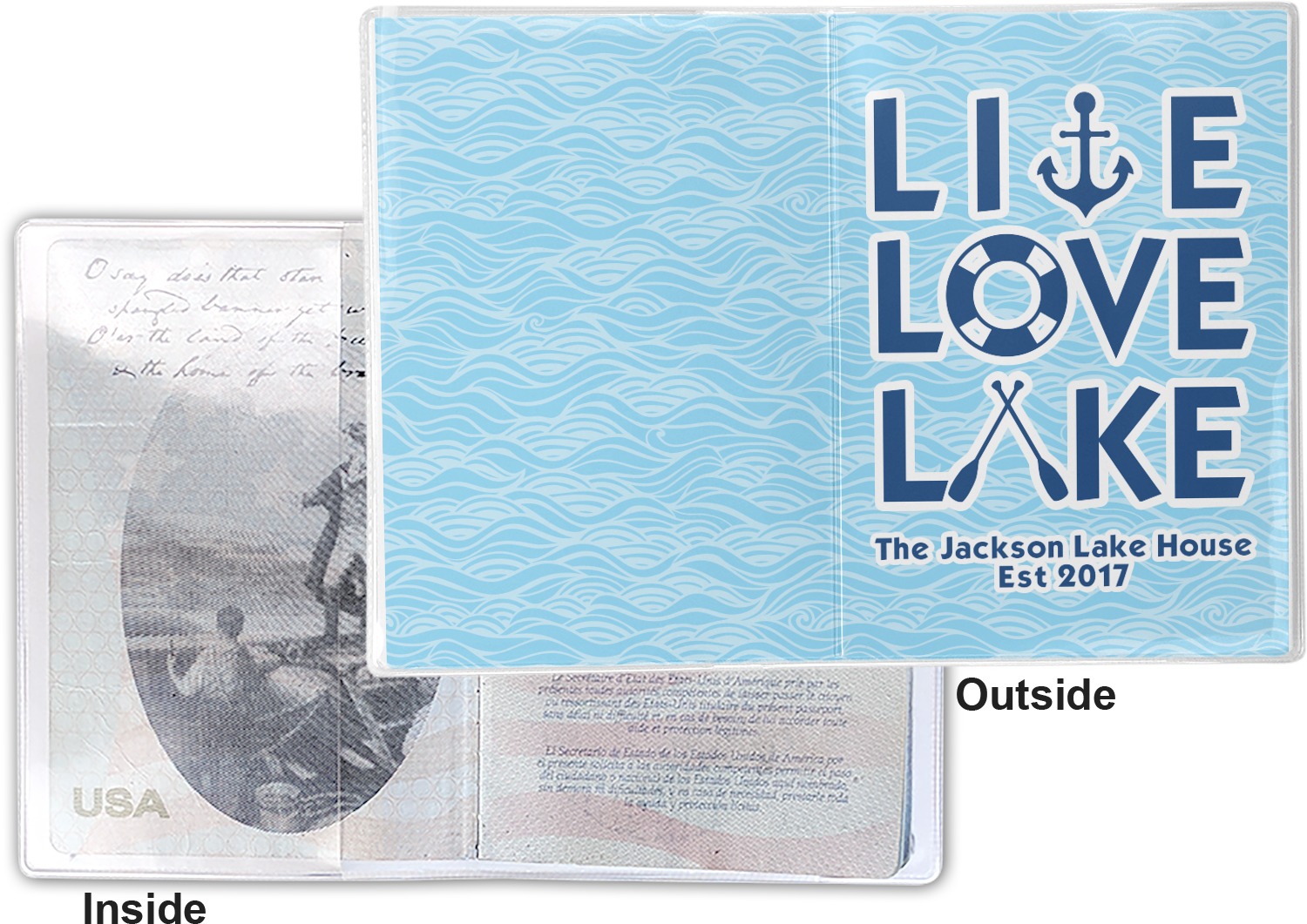 This cover is made of a sturdy clear vinyl with a personalized vinyl insert inside. There is a large and a small pocket on either side to hold the covers of your passport easily and firmly. The passport holder is approximately 7.5" x 5.25", the perfect size to snugly fit your passport. This slim cover is the perfect way to protect your passport without being one more bulky item you have to carry.