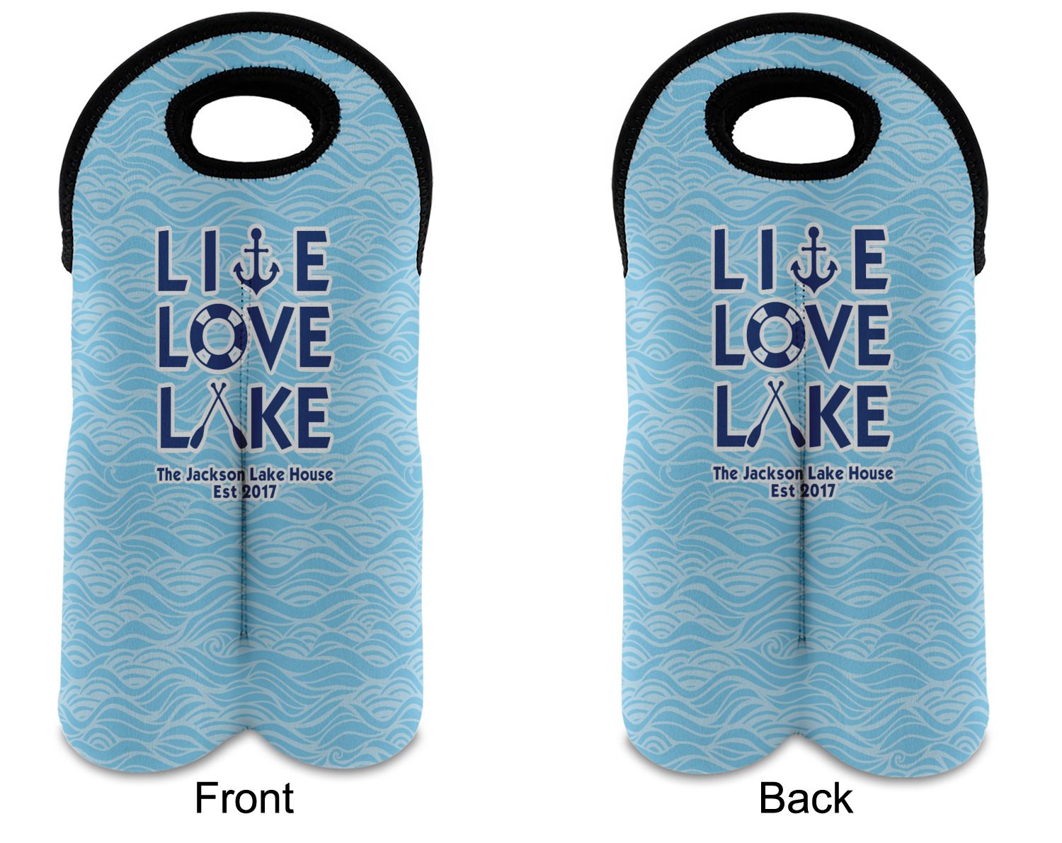 These tote bags are insulated to keep the bottles cold and have a stitched separation down the middle and double handles to keep the two bottles safe and secure during travels.