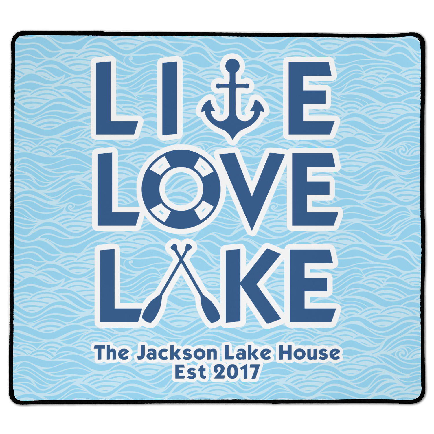 This design has a beautiful background with abstract waves that are a calming light blue. The main feature of this design is the quote. The quote used for this design says "Live Love Lake," but remember that we have many other lake house quotes to choose from. Underneath the quote you are able to put your personalization!