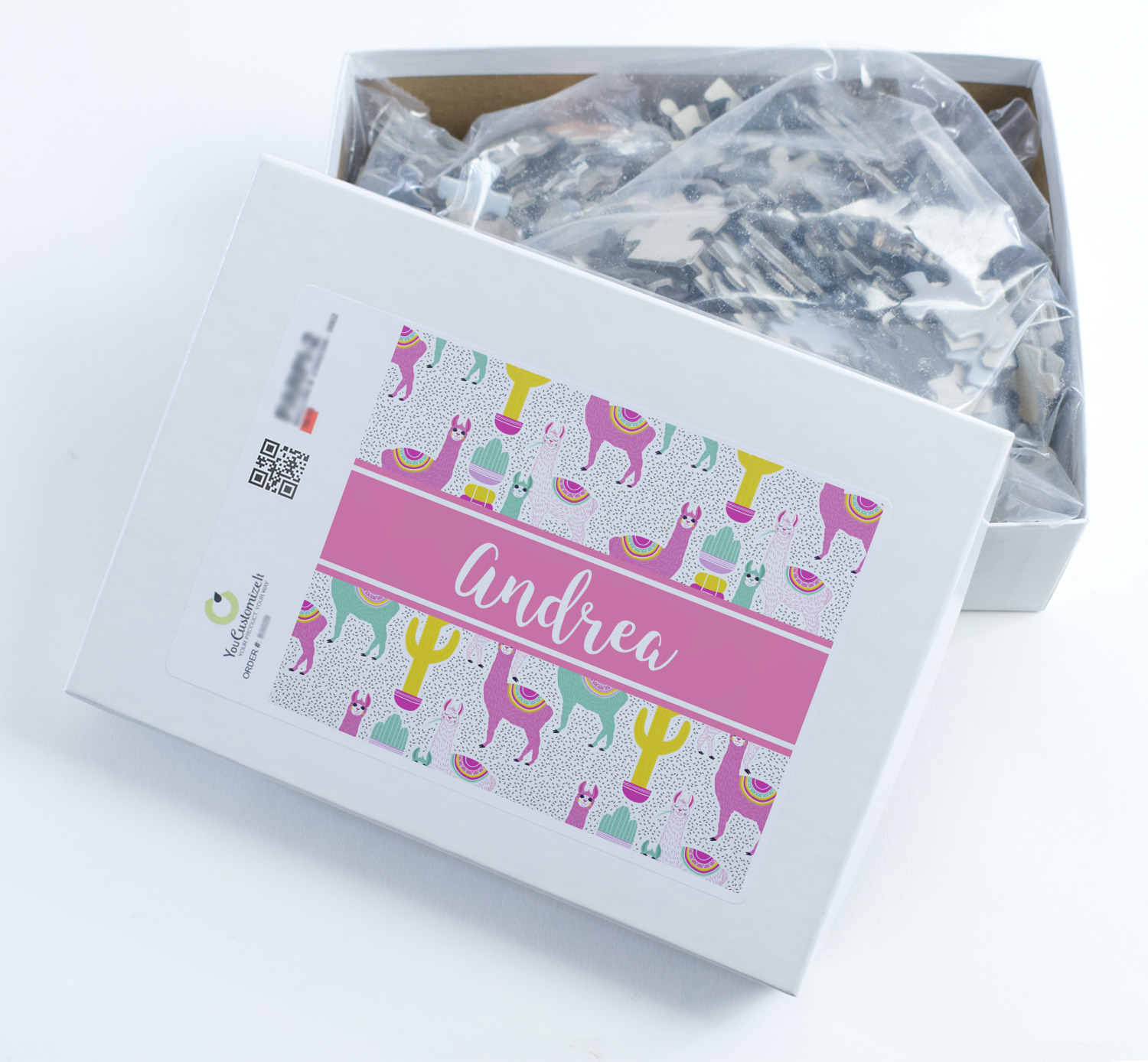 You can also upload your logo or art that you or your kids drew. To create more challenging jigsaw puzzles, you can create a pattern from with your logo or artwork. You can also add other elements such as text or personalization.