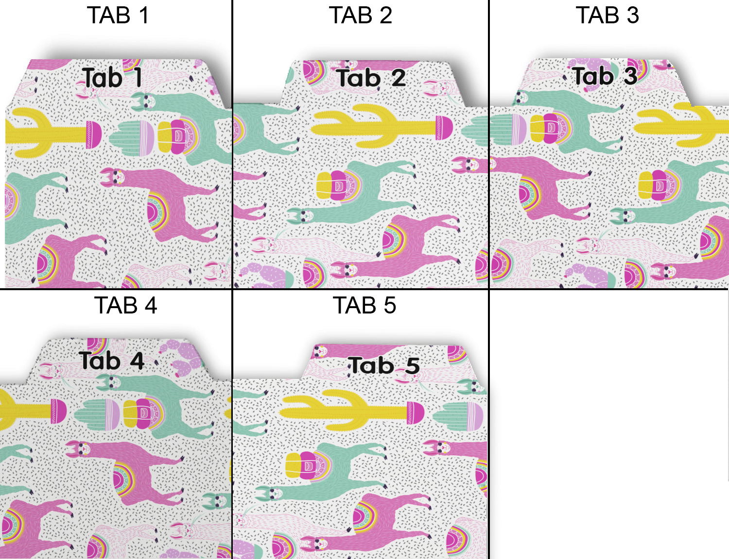 Whether you use binders at school or at work, we have designs to suit all of them. Available in 5 or 6 tab sets, you are sure to find a set to suit your needs. The back of each one is white and can be used to take notes, write vital information on, etc.