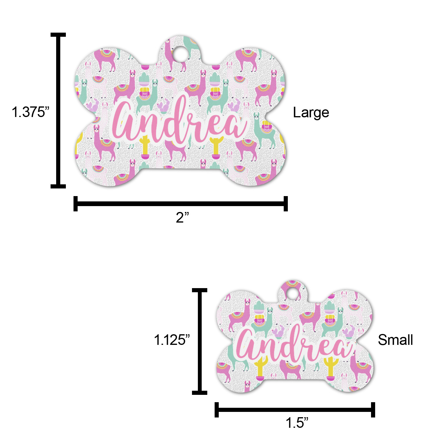 The small bone dog tag size is perfect to pair with our small dog collars, the large size pairs well with our large dog collars.