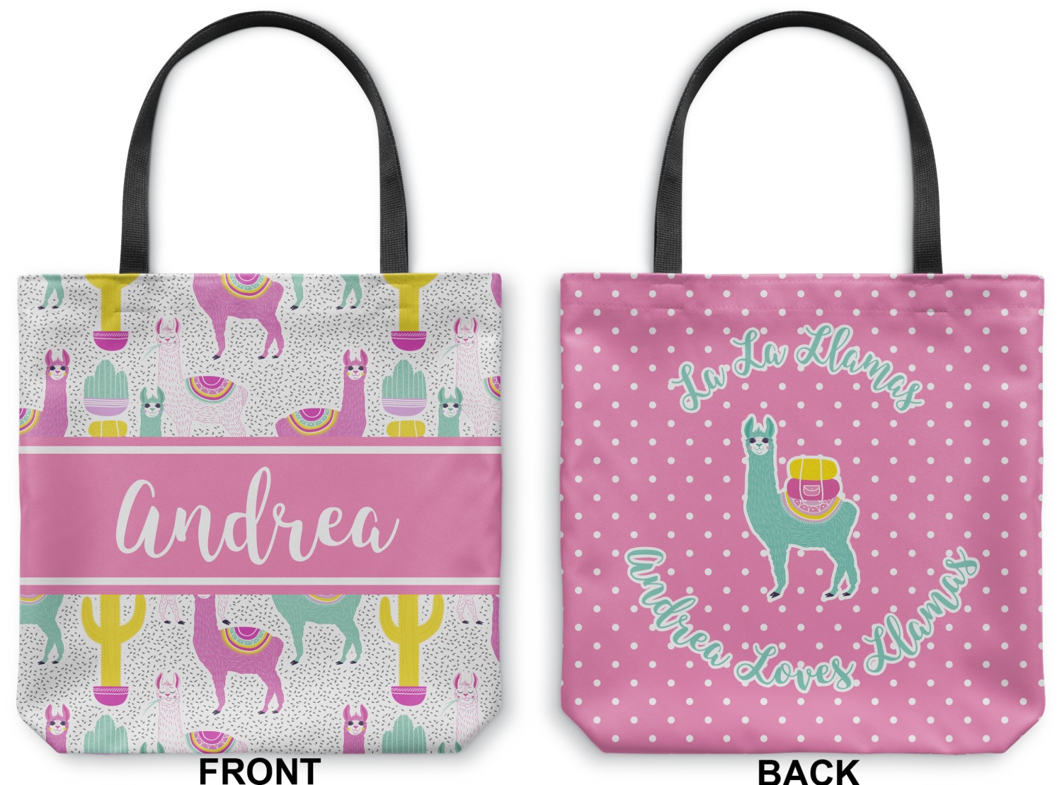 Our totes are made right here in the USA. Your design is printed on canvas fabric; the fabric is then cut and sewn on the sides and on the bottom to add an approximately 3.5 inch gusset. Black cotton handles are sewn in and reinforced. Your tote has a designs on both sides - the designs can be the same or different - the choice is yours. The inside of the tote has a black fused lining.