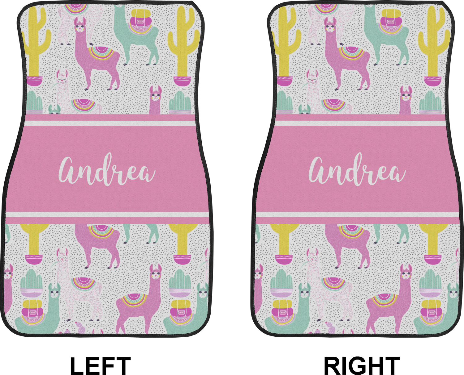 We craft our auto floor mats mats from polyester, apply a black finish to the edges, and lined at the bottom to prevent slippage. These mats protect your floors from grass, mud, and any accidental spills. We display your personalized design on the front face of each mat. The sizes of these car floor liners are standardized to provide a versatile fit for all vehicles. The front rows car mats measure at 17 by 26.5 inches, while the back rows measure at 17 by 13 inches. We sell three packages of car floor mats. You can purchase a pair of front row car mats, a pair of back row car mats, or a set of front row and back row car mats. To make an informed purchase, we recommend measuring the surface area of your car floors.