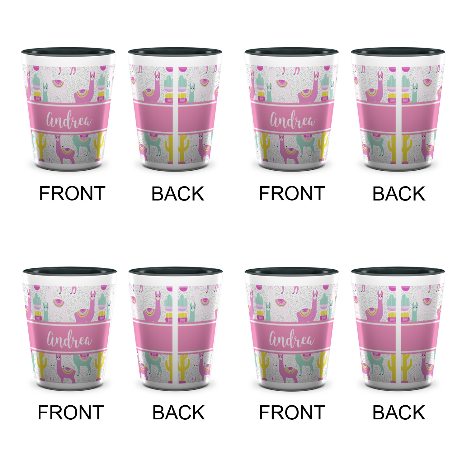 Made from ceramic these shot glasses are printed in full color with the design of your choice. These are a standard 1.5oz size and stand 2.25" tall. Available in a full white ceramic or a two-tone with a black color inside the shot glass. Buy a single or a set of 4, all of which can be designed separately to get you just what you want and need.
