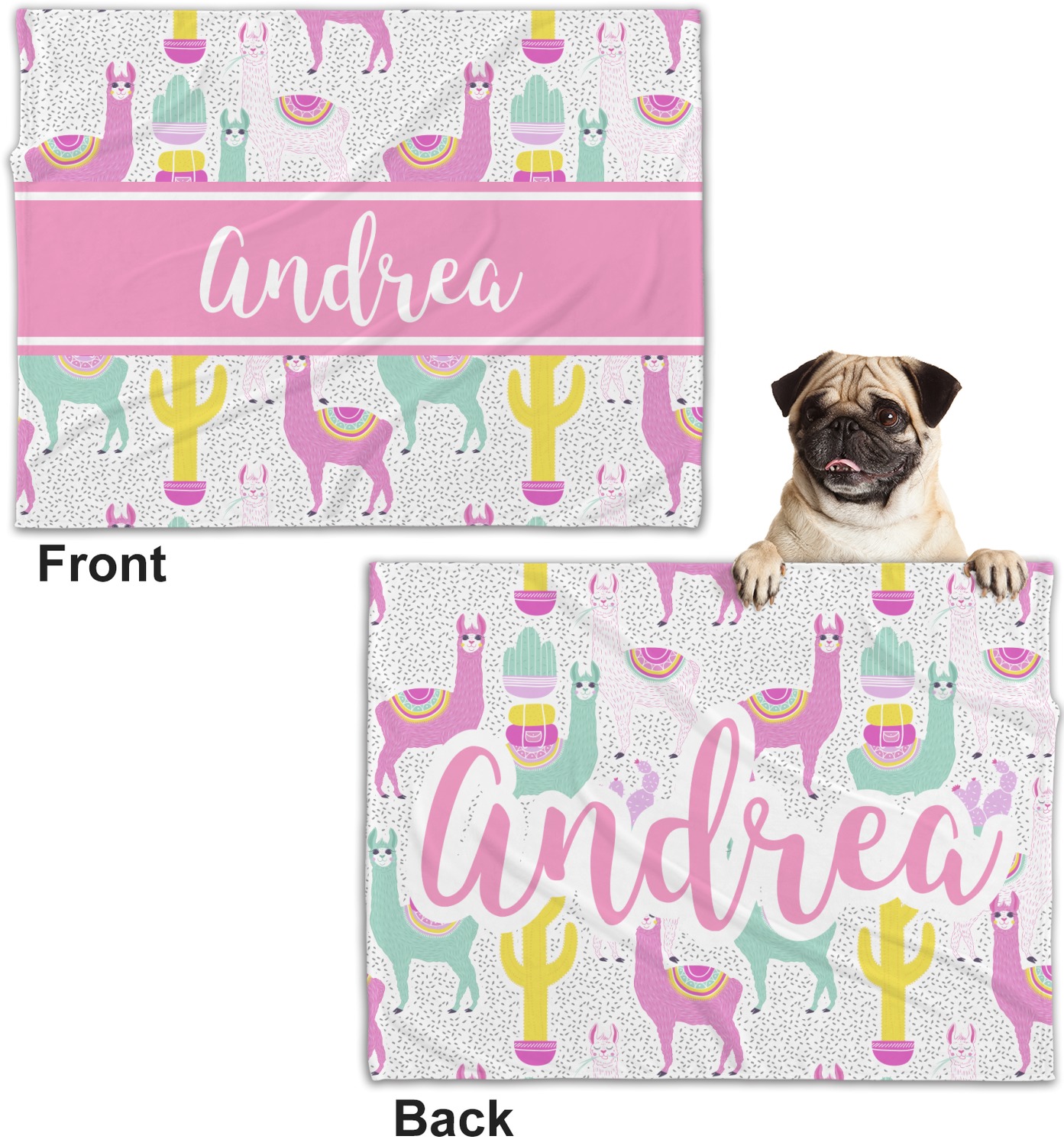 These dog blankets are crafted from a gentle, soft-to-the-touch, minky material. We print your customizations, either matching or differing, on both the top and underside of the blanket. These personalized dog blankets are available in two sizes: regular and large. Our regular size, at 40" x 30", accommodates small and some medium size dogs. At 60" x 50", our large dog blanket is a better fit for bigger breeds. Though specialized for dogs, these blankets still make a thoughtful gift for your favorite feline, or any other pet in mind!