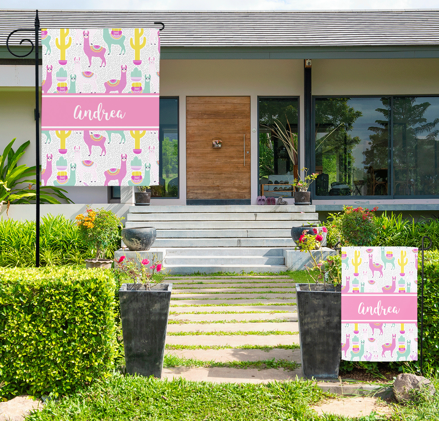 Decorate your front yard or your garden with one of our personalized garden flags! These garden flags will add a splash of color and personalization to any home's greenspace. Customize one with your name, favorite colors, and patterns, as a great addition to your home's exterior! Or, customize multiple seasonal flags and change them throughout the year!