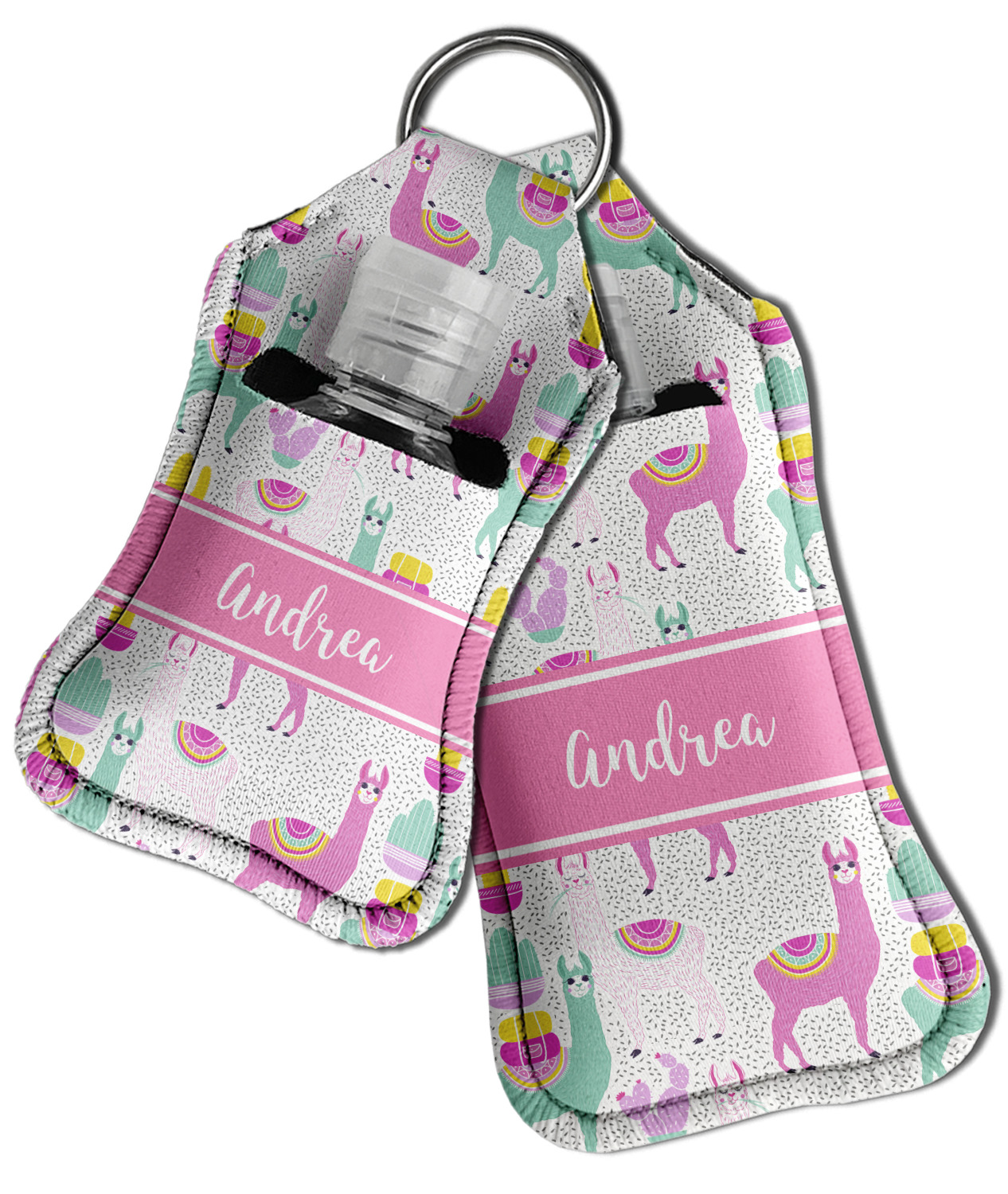 Each hand sanitizer holder comes with its own empty travel-sized, refillable hand sanitizer sure to fit snug in your customized sanitizer case! Our hand sanitizer cases are a durable, yet soft neoprene material sure to last any daily activities or travel agenda. Customize and personalize a hand sanitizer bottle holder with one of our two sizes - small (4.25" x 2.25") or large (5.5" x 2.5"). Each travel sanitizer holder comes with a keyring for attachment on bags, keys, or more!