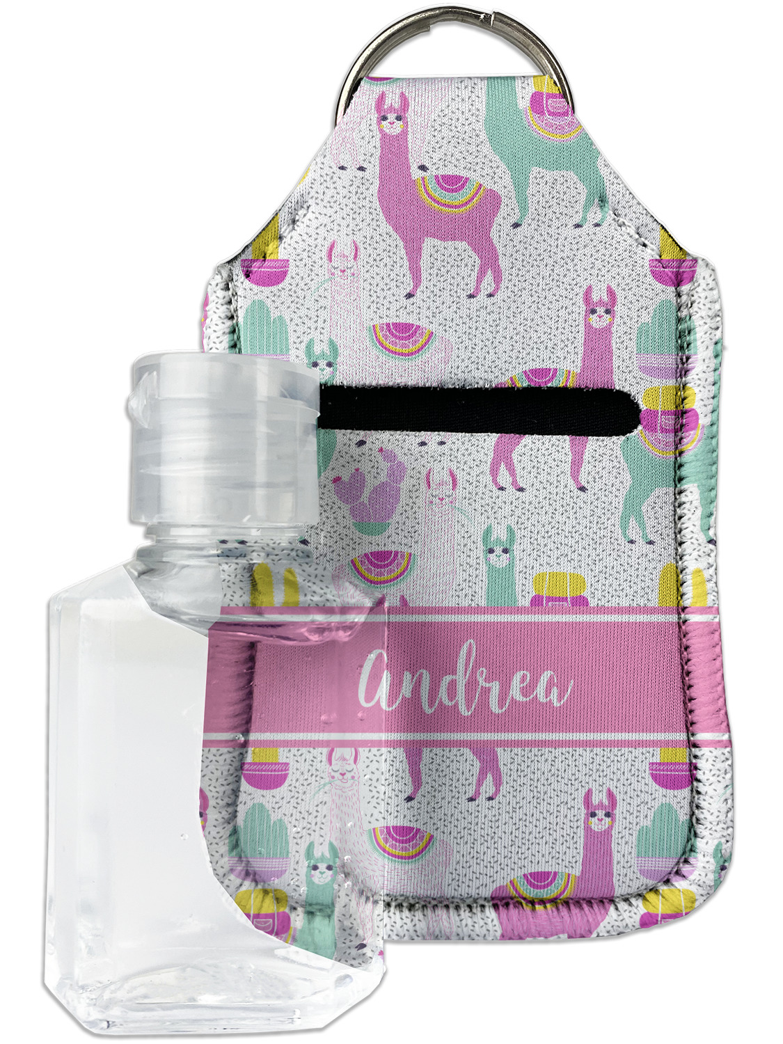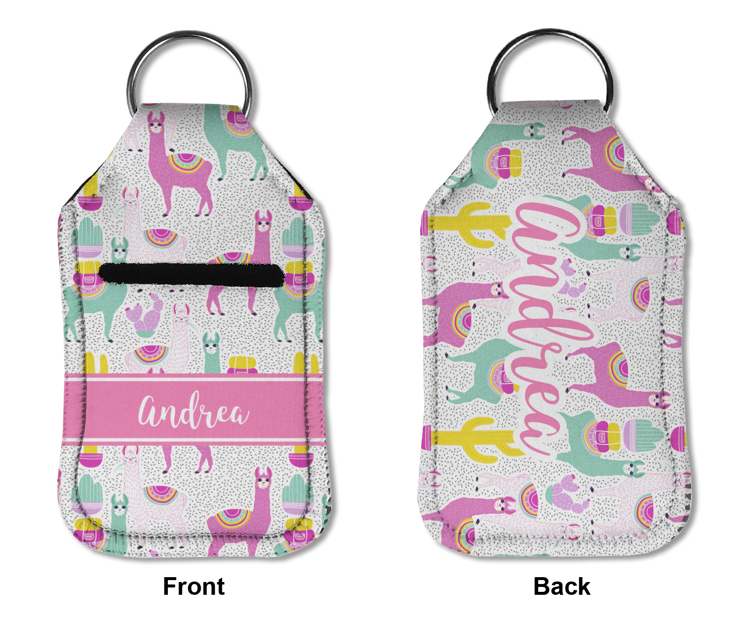 Each hand sanitizer holder comes with its own empty travel-sized, refillable hand sanitizer sure to fit snug in your customized sanitizer case! Our hand sanitizer cases are a durable, yet soft neoprene material sure to last any daily activities or travel agenda. Customize and personalize a hand sanitizer bottle holder with one of our two sizes - small (4.25" x 2.25") or large (5.5" x 2.5"). Each travel sanitizer holder comes with a keyring for attachment on bags, keys, or more!