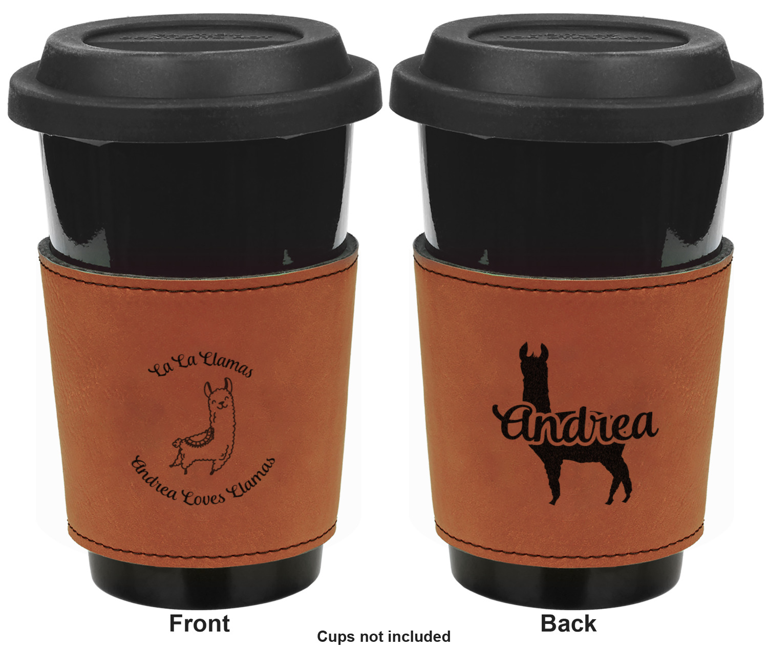 This cup sleeve is made from a suave, cognac-brown leatherette and finished with an intricate, black stitch. The interior of this can sleeve is fabricated from a thin foam material to help insulate your mug's contents. The sleeve is specifically made to suit tapered glasses or mugs, so the top's diameter is 3.5 inches, while the bottom's diameter is 2.75 inches. Your customized design will be laser engraved into the leatherette, leaving behind crisp, black imprint. With these products, we provide you with the option of engraving the front and back, or the front only.
