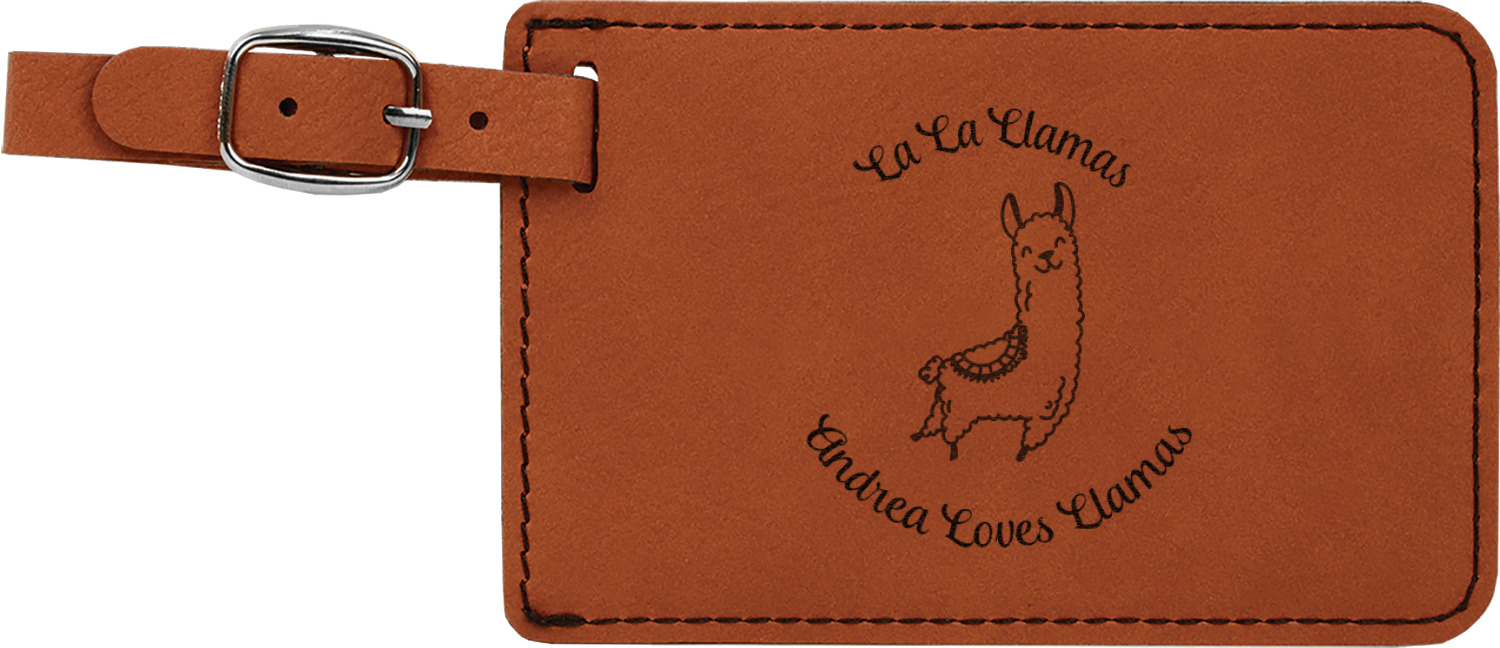 This luggage tag will surely be able to get you started in having all the right tools for traveling. It is made of a beautiful leatherette material that is a nice shade of cognac brown. The front of the tag is where your design goes. The sturdy black stitching gives your design an extra pop and gives the tag extra durability. The back of the tag has a clear vinyl window where you can slip in your address card. The tag comes with a great little buckle strap that you can easily use to clip to your suitcase. The tag itself measures at approximately 5.5"W x 4.25"H.