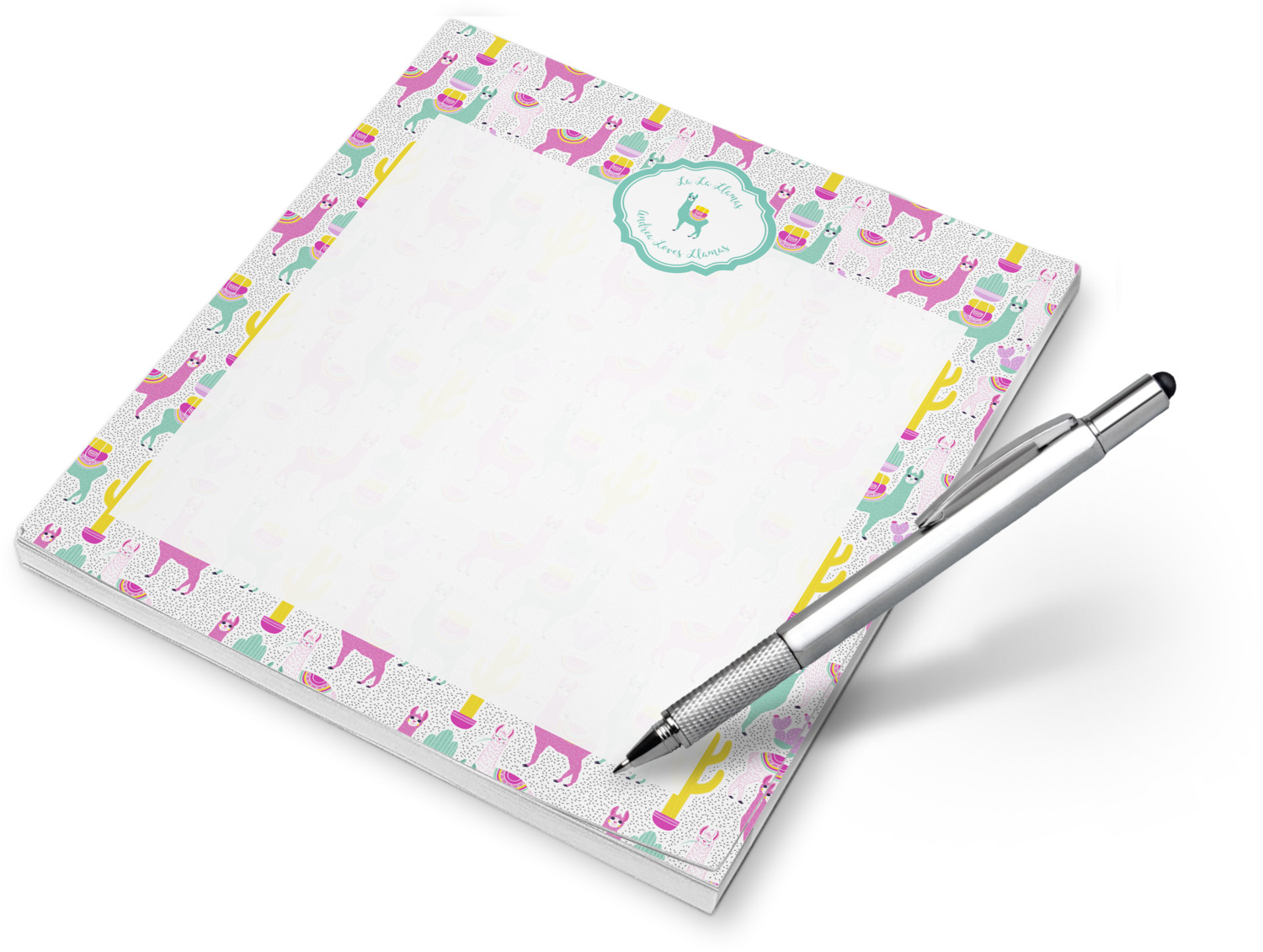 Your custom notepad features 50 sheets of thick, white paper, with your customization in the background and the edges. At approximately 6" x 5.5", these personalized memo pads are slightly larger than your average notepad. The individual notes tear easily from binding, which allows for quick, convenient, note-taking.
