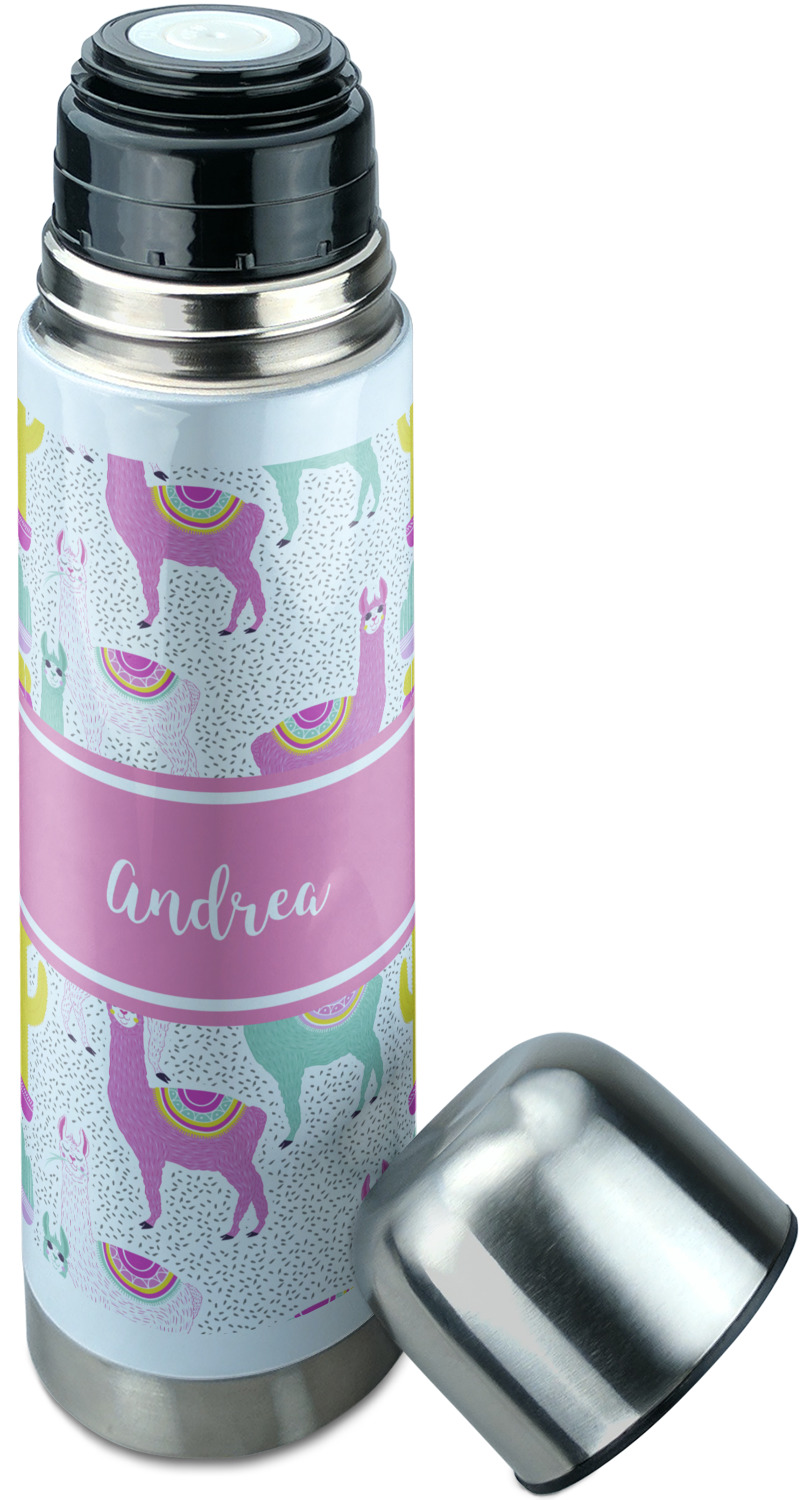 Manufactured from stainless steel, this thermos is built durably and double-walled insulated to preserve the temperature of your drink for hours. It also features a screw off lid that is made to also function as a small cup. Upon unscrewing this part of the thermos bottle, a pop-open, pour feature emerges. This feature allows you to slowly pour your beverage into your lid, ensuring a steady, controlled pour into your lid or other cup. With a capacity of 25 ounces, these large thermoses can hold several servings of your favorite beverage. Your customization is displayed all around the bottle with bright, vibrant color.