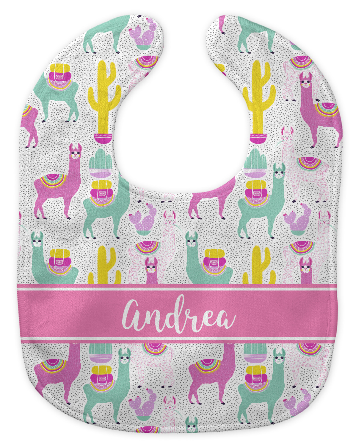 Made of soft polyester, each customizable bib hugs comfortably around the neck to catch every drip and drool. Each bib design is printed with baby-safe ink and finished with a secure stitch pattern and velcro clasp. We carry two customizable bib styles -Microfiber Velour and Jersey Knit.