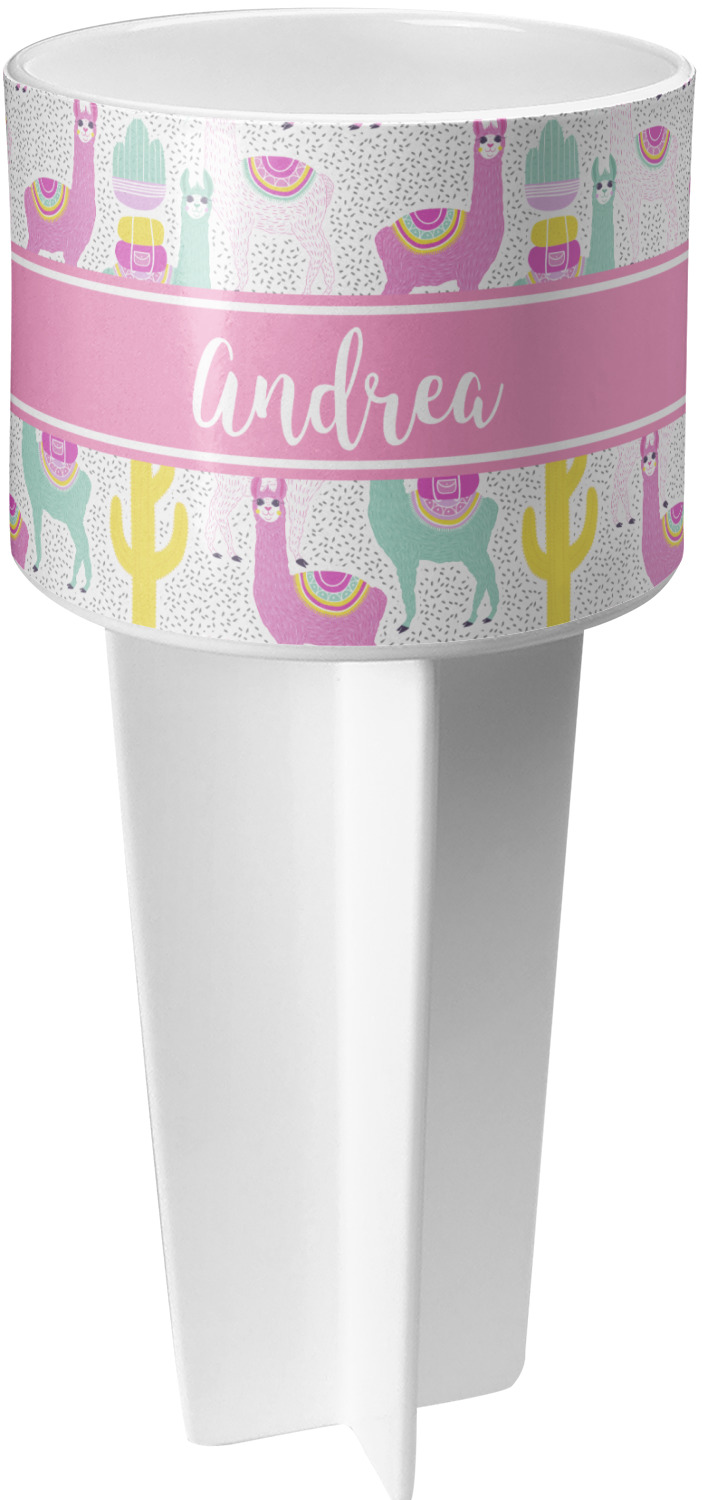 This cup holder has a large stake at its bottom that anchors it to the sand or ground below, while the cup holder rests above the stake. The entire drink holder is made of durable plastic and displays your customization around the cup holder portion. We sell these personalized beach spikers in two different colors: black and white.