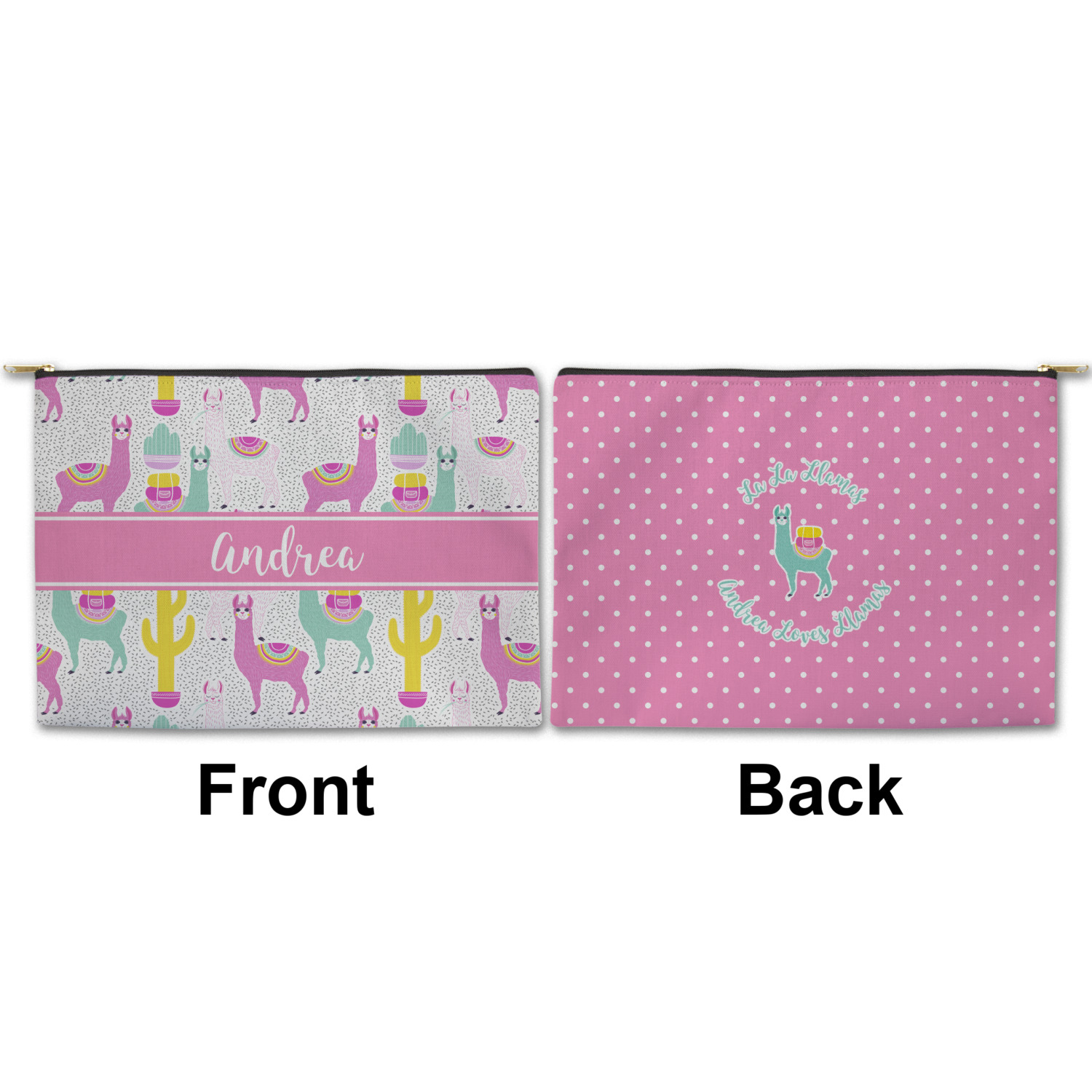 You can design both the front and the back of the pouch - same design, two complementary designs or two totally different designs - the choice is yours! We offer many different personalization styles i.e. name, name & initial, monograms - so the choice to personalize is also yours.