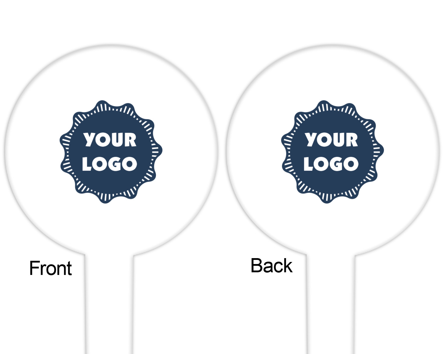 The round disc on these food & drink picks can be customized and personalized to your specifications. Your image will be printed in full color on one side or both sides. You can use the same image on both sides or use two different images.