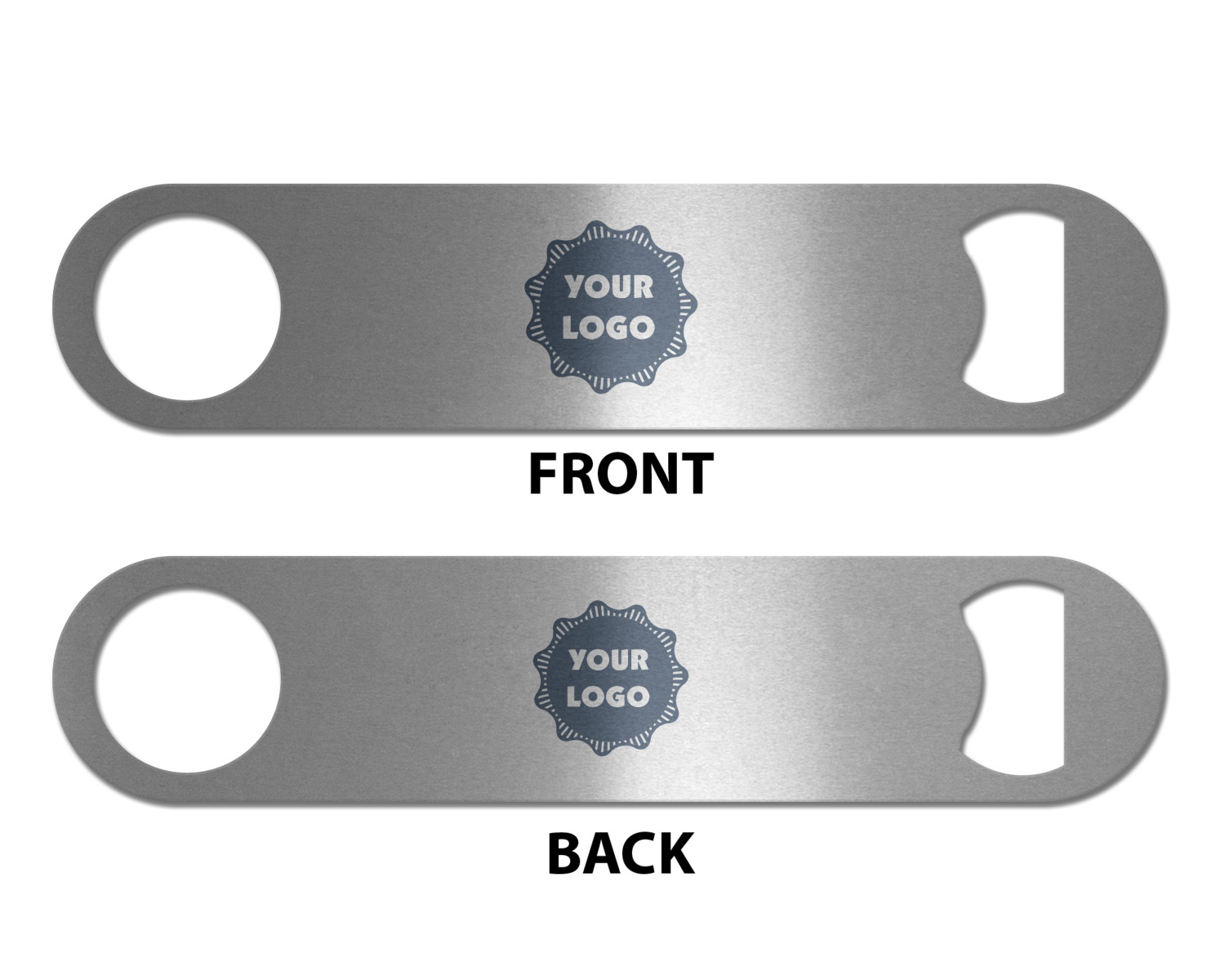 Made from stainless steel, these beer bottle openers are 7 by 1.625 inches, giving you plenty of leverage when trying to open a stubborn bottle. On one end of this personalized bottle opener, you'll find a circular hole for you to hang and display your opener. On the opposite end, you'll find the tool used for opening bottles. This opener in particular has the same structure and style as professional bartender bottle openers. Your customization is sublimated onto both the back and front, and both sides can be customized individually. Choose from one of our two base colors - white or silver.