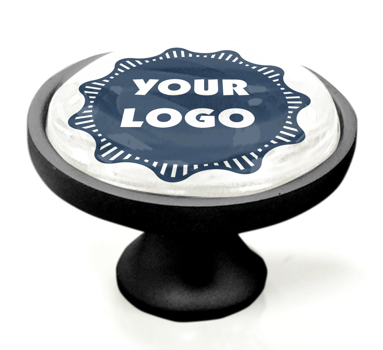 We sell these cabinet pulls in two different colors to better match your room's color scheme. We offer an oil-rubbed bronze base that is black in color, and a satin nickel option, which has a silver color. Your design is displayed across a high gloss vinyl insert that is placed on top of these cabinet handles. We then place a 1 inch thick glass cabochon atop the design, which seals the cabinet knob and makes the colors of your customization stand out. These custom cabinet knobs are approximately 1.3 inches in diameter. Your purchase includes a 1 inch screw that can be used to mount the knob to any cabinet in your home.