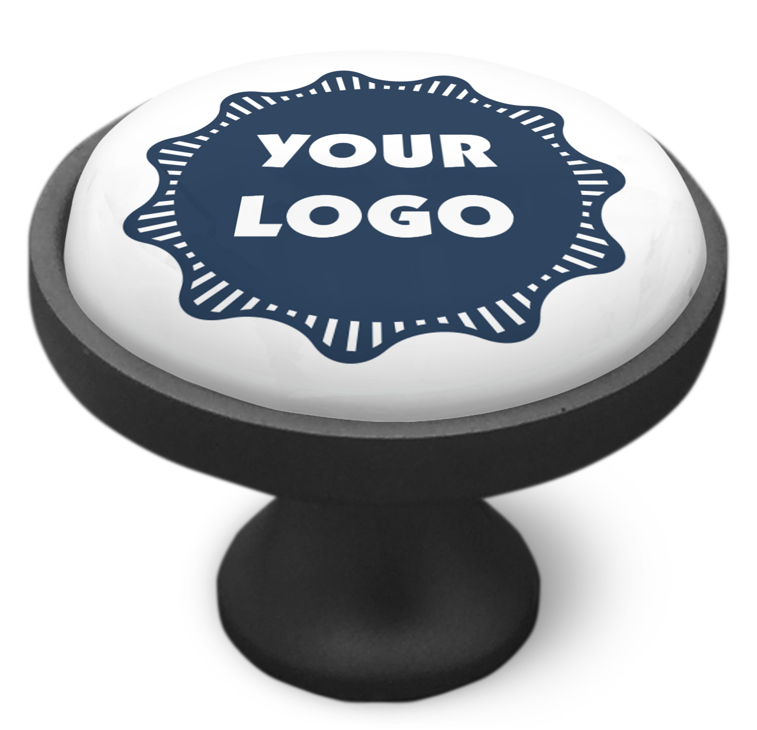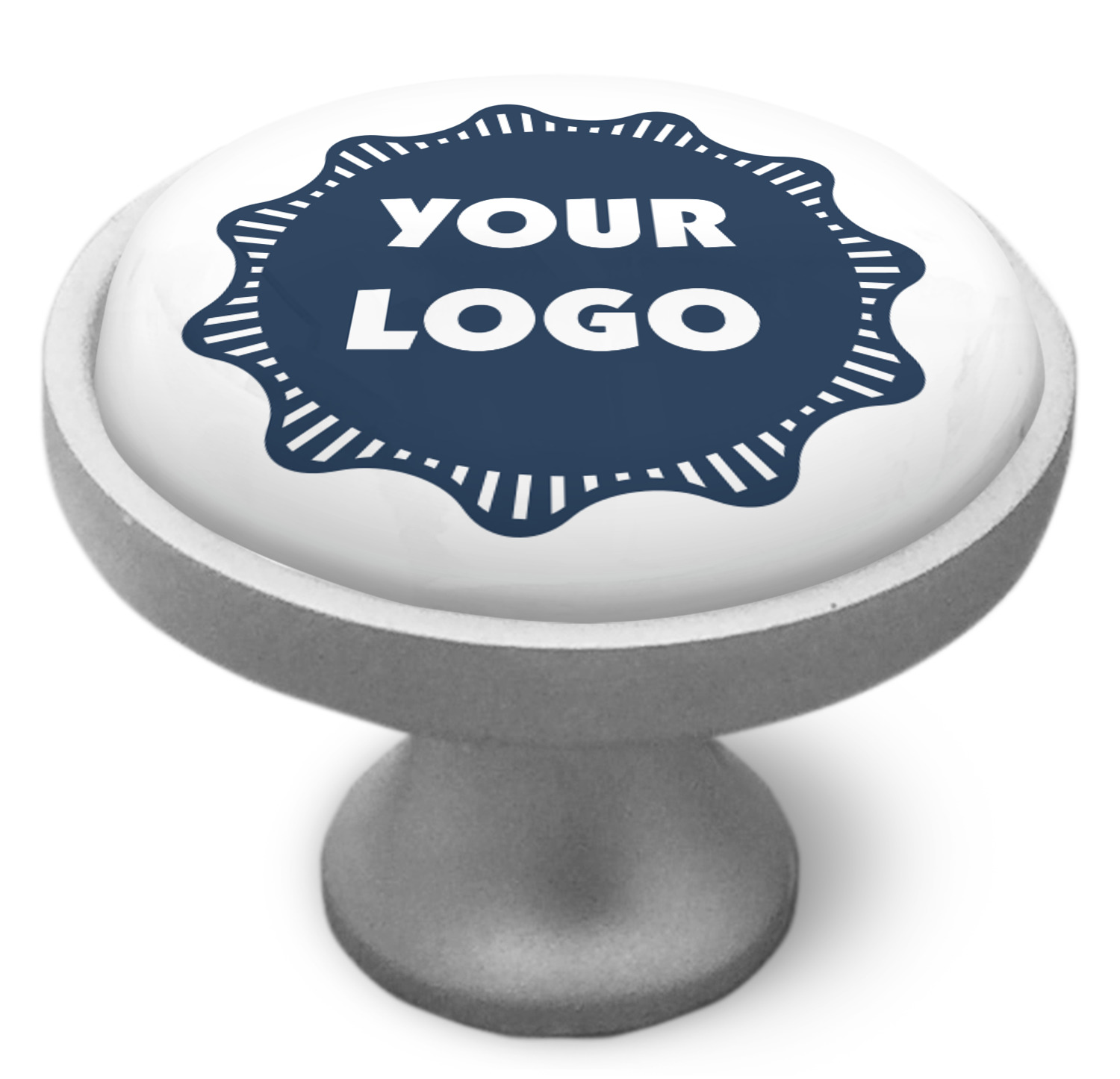 We sell these cabinet pulls in two different colors to better match your room's color scheme. We offer an oil-rubbed bronze base that is black in color, and a satin nickel option, which has a silver color. Your design is displayed across a high gloss vinyl insert that is placed on top of these cabinet handles. We then place a 1 inch thick glass cabochon atop the design, which seals the cabinet knob and makes the colors of your customization stand out. These custom cabinet knobs are approximately 1.3 inches in diameter. Your purchase includes a 1 inch screw that can be used to mount the knob to any cabinet in your home.