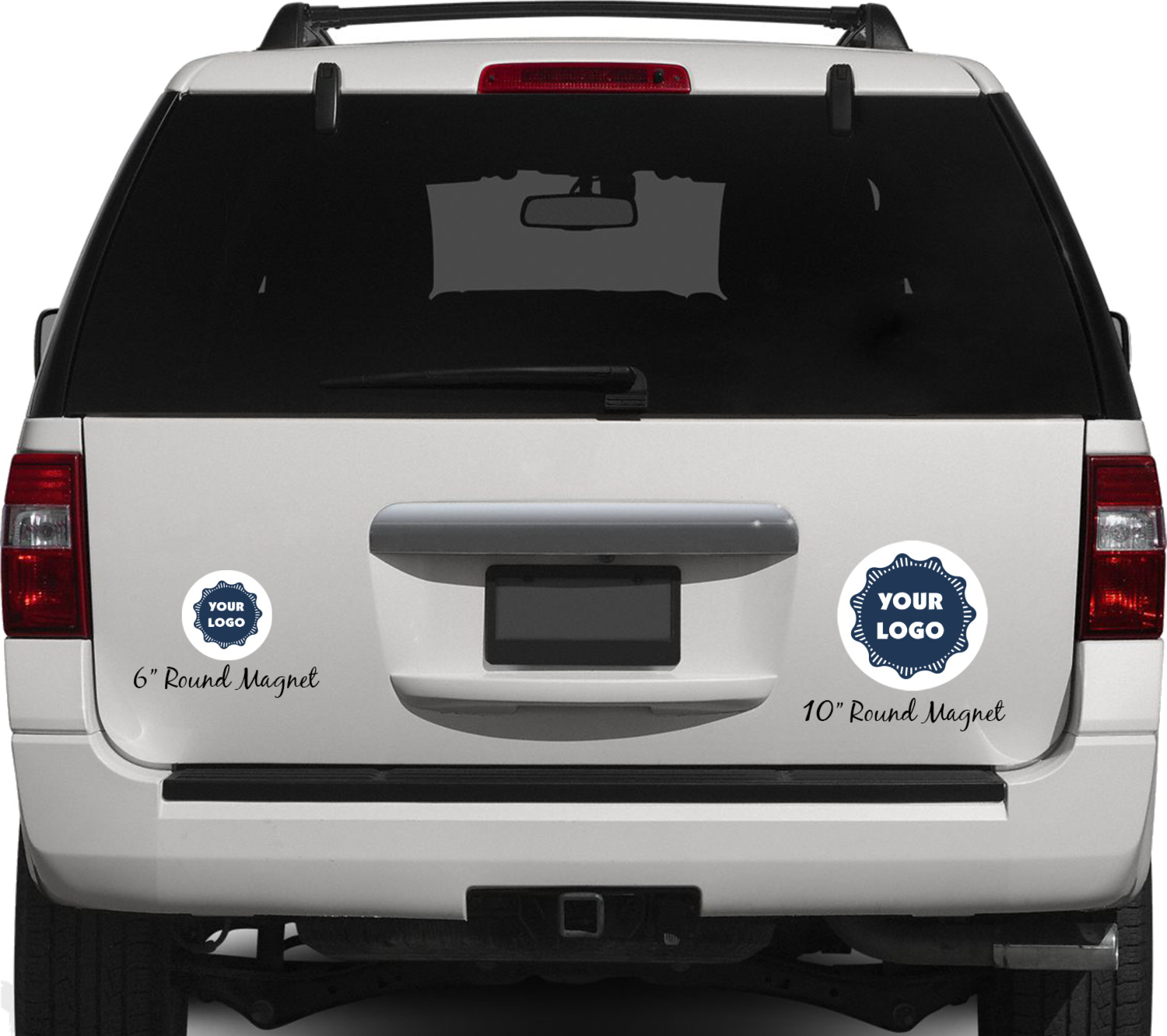 Your personalized car magnets are available for purchase in two shapes and two sizes. We carry round and square editions; each shape can either be 6 by 6 inches, or 10 by 10 inches, depending on your needs. Both versions are 1 millimeter thick, which is considered, within the industry, as the ideal thickness for automobile magnets. The magnetic car decals will adhere to any smooth, metal surface of your cars body, such as the trunk door or a side panel. However, please note that some vehicles are constructed from fiberglass bodies, which prevents the adhesion of anything magnetic. We advise that you test your vehicle before purchasing these magnets.