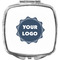 Our compact mirrors are customized with your design on one side. The other side is patterned silver tone metal. Inside, there are two mirrors.