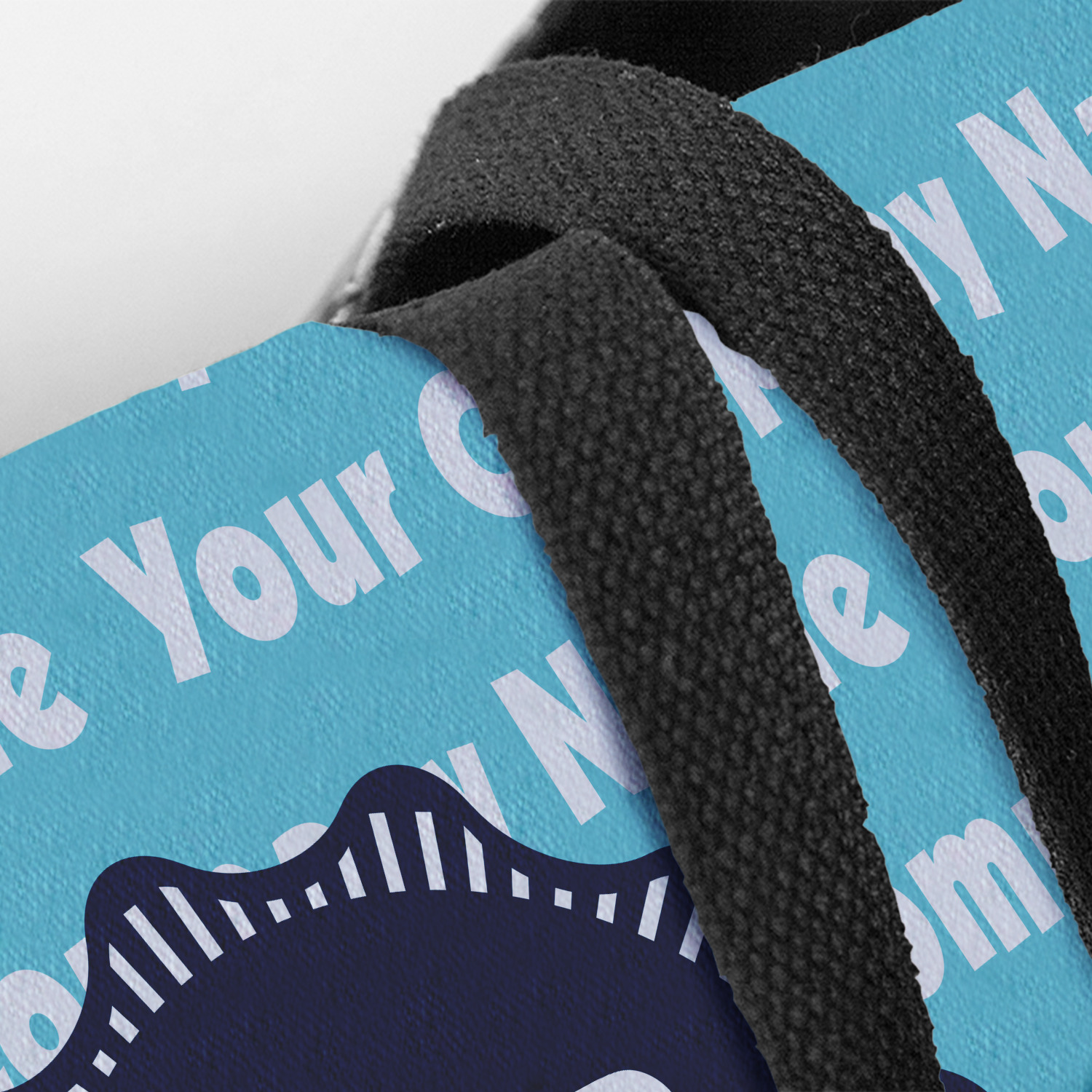 These beach totes are handmade here in the USA. Fabric is printed with your design. The tote is then sewn from the fabric pieces, lining and handles added.