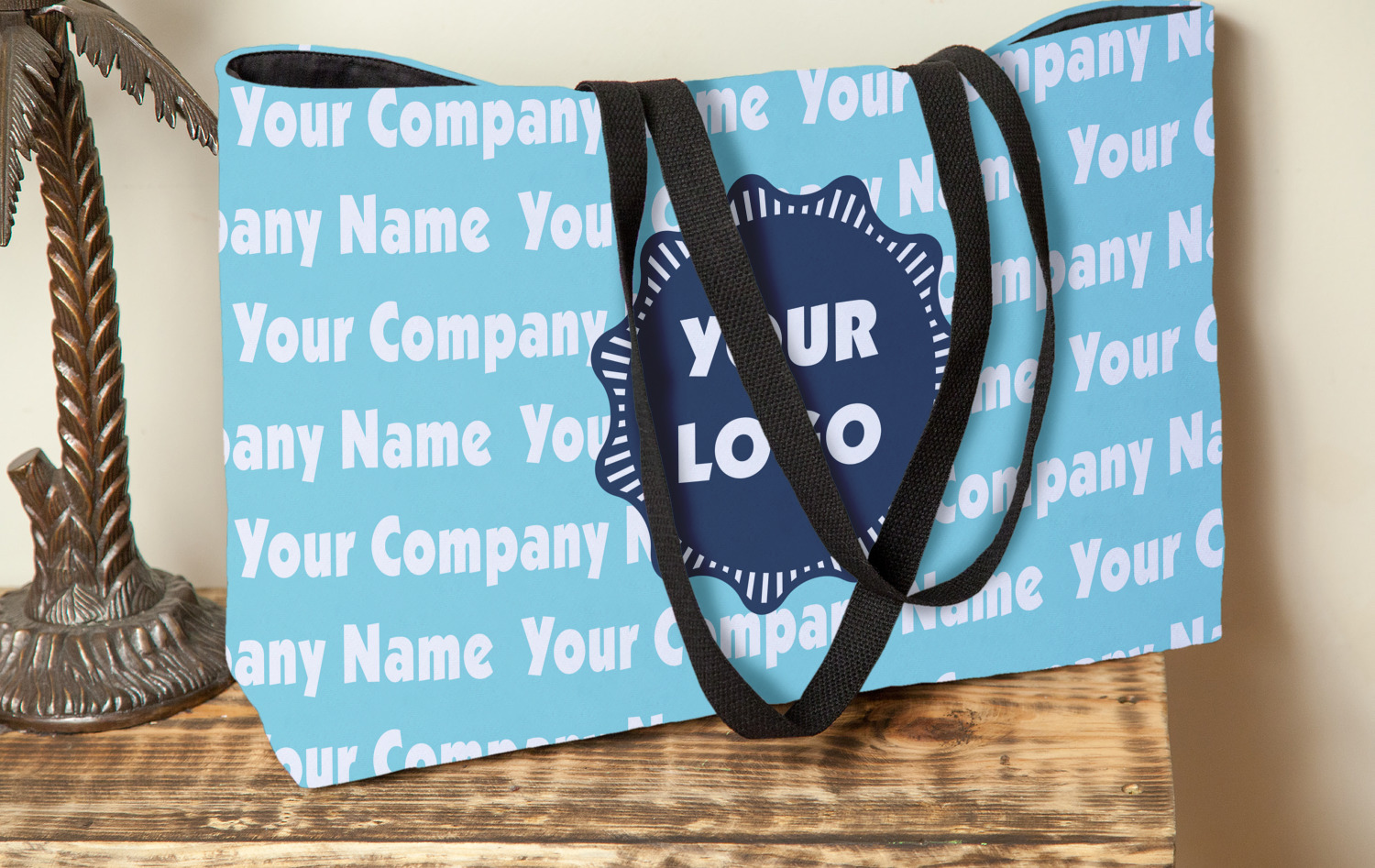 The totes are made from a sturdy canvas material on the outside and are lined with a black poly cotton lining. The beach totes have an approx. 28" black woven handles.