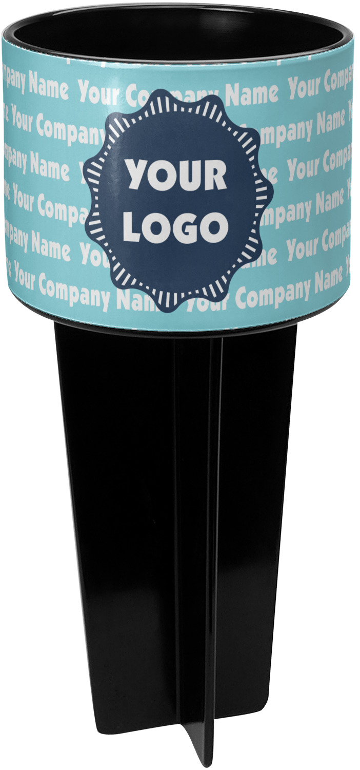 This cup holder has a large stake at its bottom that anchors it to the sand or ground below, while the cup holder rests above the stake. The entire drink holder is made of durable plastic and displays your customization around the cup holder portion. We sell these personalized beach spikers in two different colors: black and white.