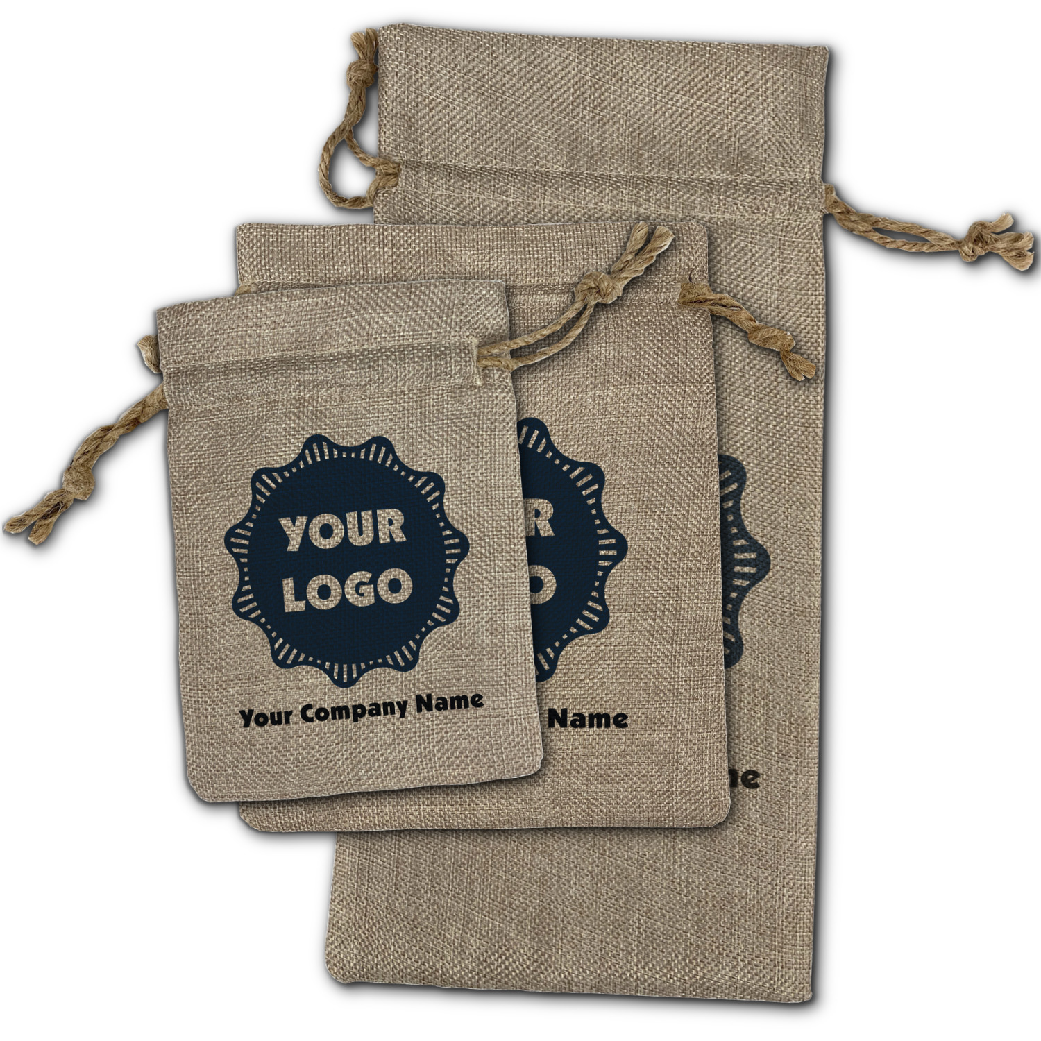 We sell our Burlap Gift Bags in 3 variant sized bags. Made with burlap polyester, each personalized bag can be secured with a twine drawstring pull. Your custom design is available to print on one side or both sides - completely up to you! The sizes of the bags measure approximately 4.5" x 6.5" for the smallest size, 6.5" x 8.0" for the medium size, and 6.5" x 13.5" for the large-sized bag.