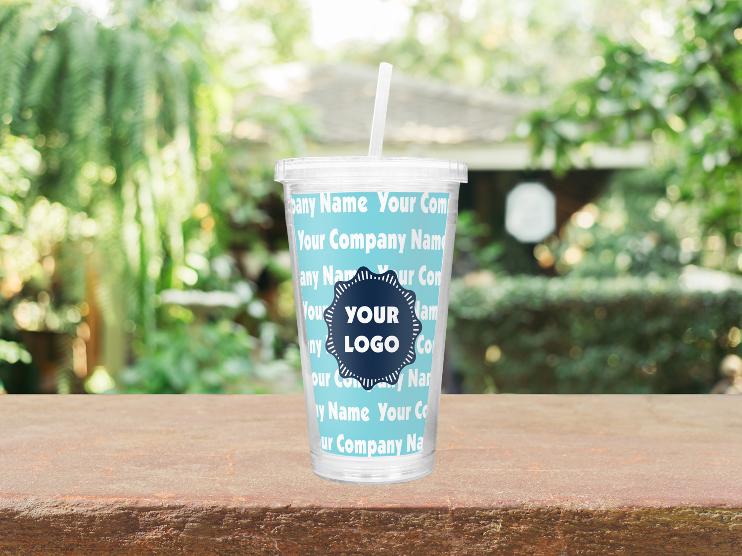 These tumblers are customized for you with a printed insert between the two walls of the cup. The lid screws on tight and helps to keep your drink cold.