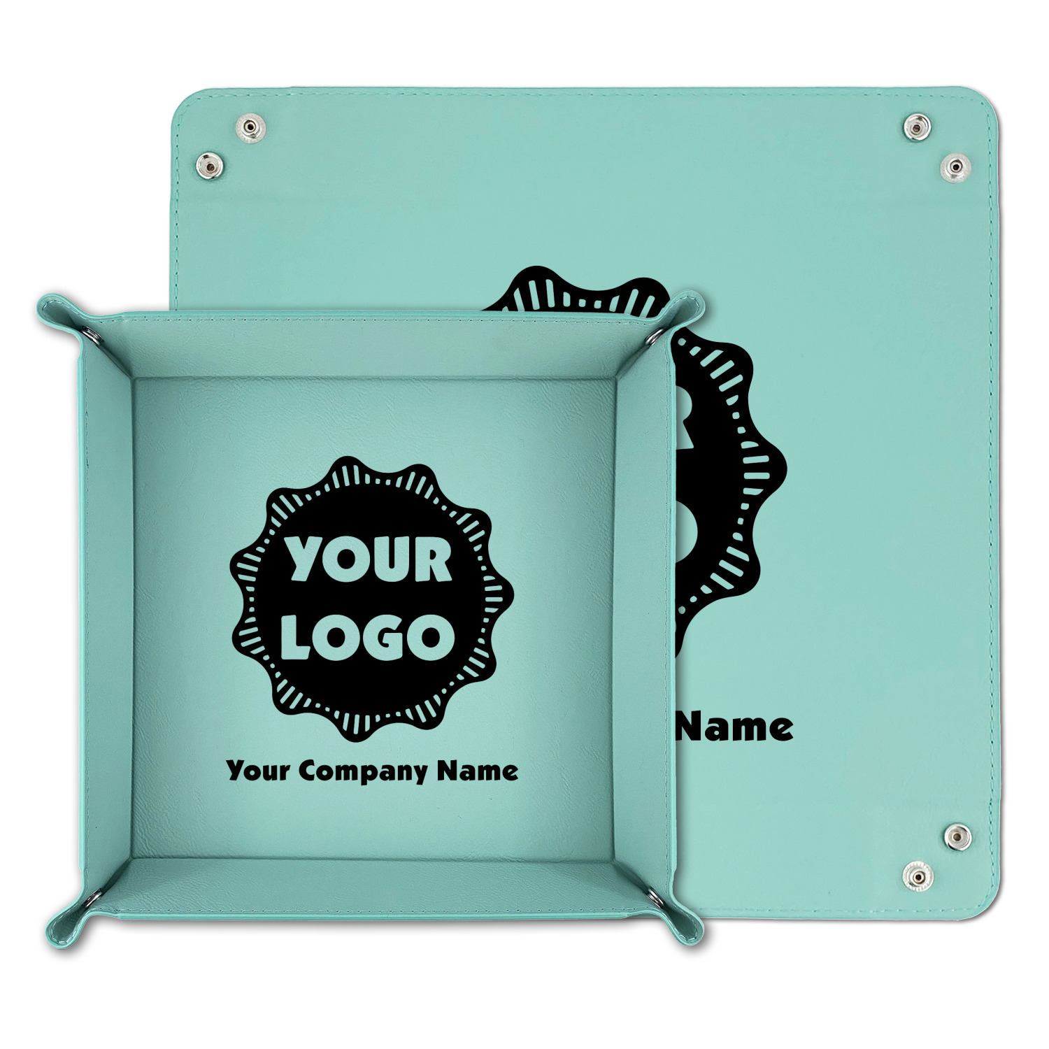 The leatherette wraps the hard board base and sides with flexible hinges to fold the sides up. The corners are secured using silver snaps. The 6in x 6 in tray measures approximately 9.5in x 9.5in when laid flat. The 9in x 9in tray measures approximately 13in x 13in when laid flat.