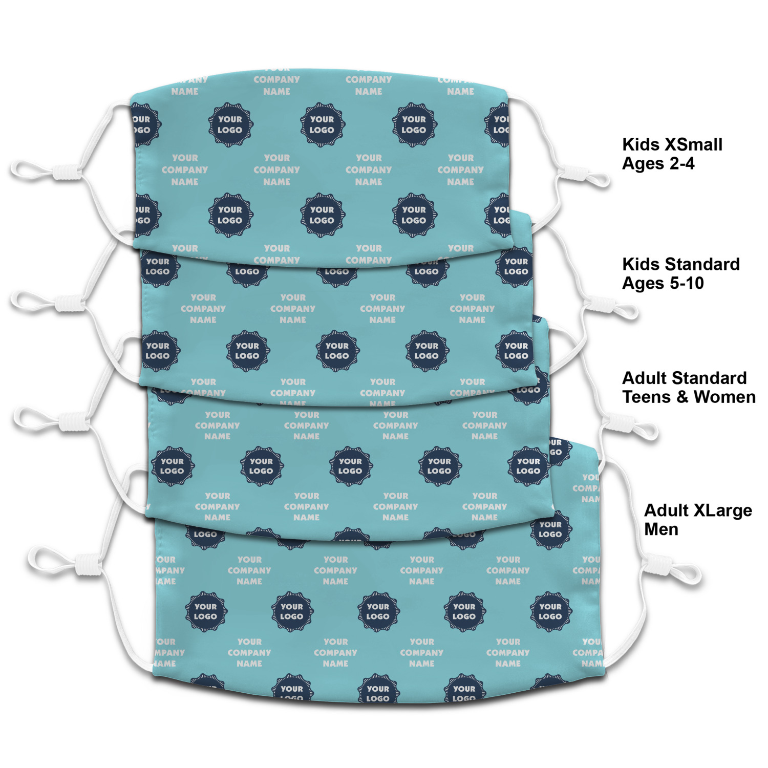 Our kids's masks are available in two sizes - Extra Small and Standard. The extra small are designed to fit 2-4 year olds, and the small to fit 4-10 year olds. The extra small face mask measures 6.25 inches wide by 3.25 inches tall, while the standard size measures 6.5 inches wide by 3.5 inches tall.
