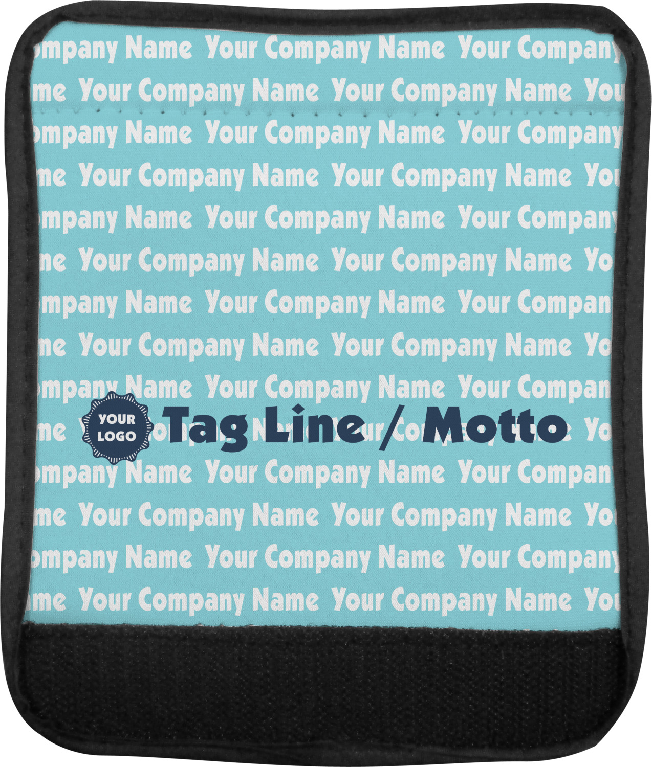 The luggage handle covers are made of neoprene with black trim and have Velcro closure to snugly fit around the handle. Your design is printed on the neoprene. The covers measure approx 5"x6".