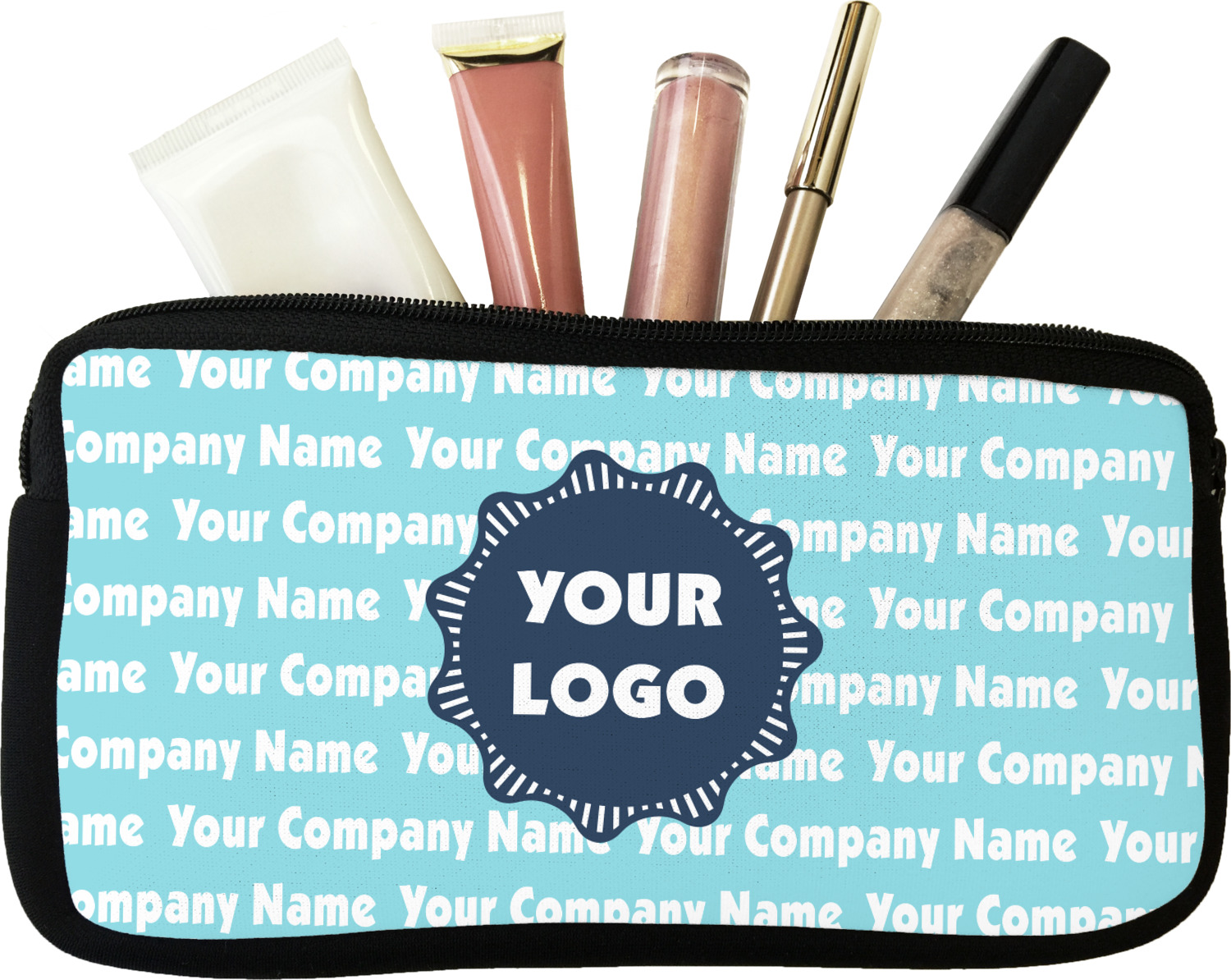 Our personalized makeup bags are available in many different designs, patterns and colors - so you are sure to find one that will love. They are made of neoprene (same material as wet-suits) and thus are water resistant, so spillages in your makeup bag will not end up all over you purse. They are customized on one side and are black on the other side and the zipper is black as well.