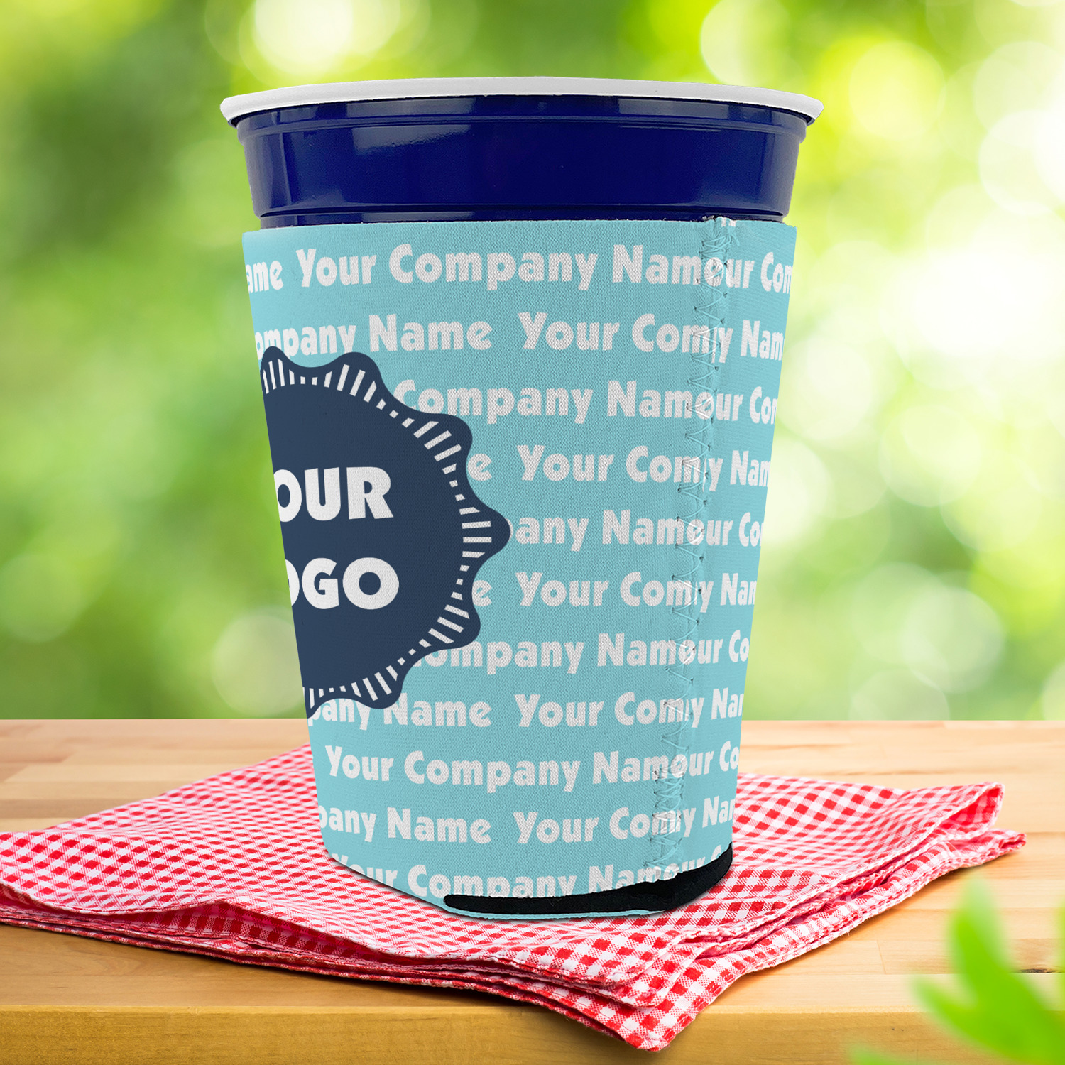Made from neoprene with a polyester outer fabric and sewn seams, these premium quality party cup sleeves are very durable and will hold up to heavy use. They are available in 2 styles - with a bottom or just a sleeve to go around the outside of the tapered cup. The sleeve covers are about 4" tall and cover about 90% of the classic 16 oz. Solo cup.