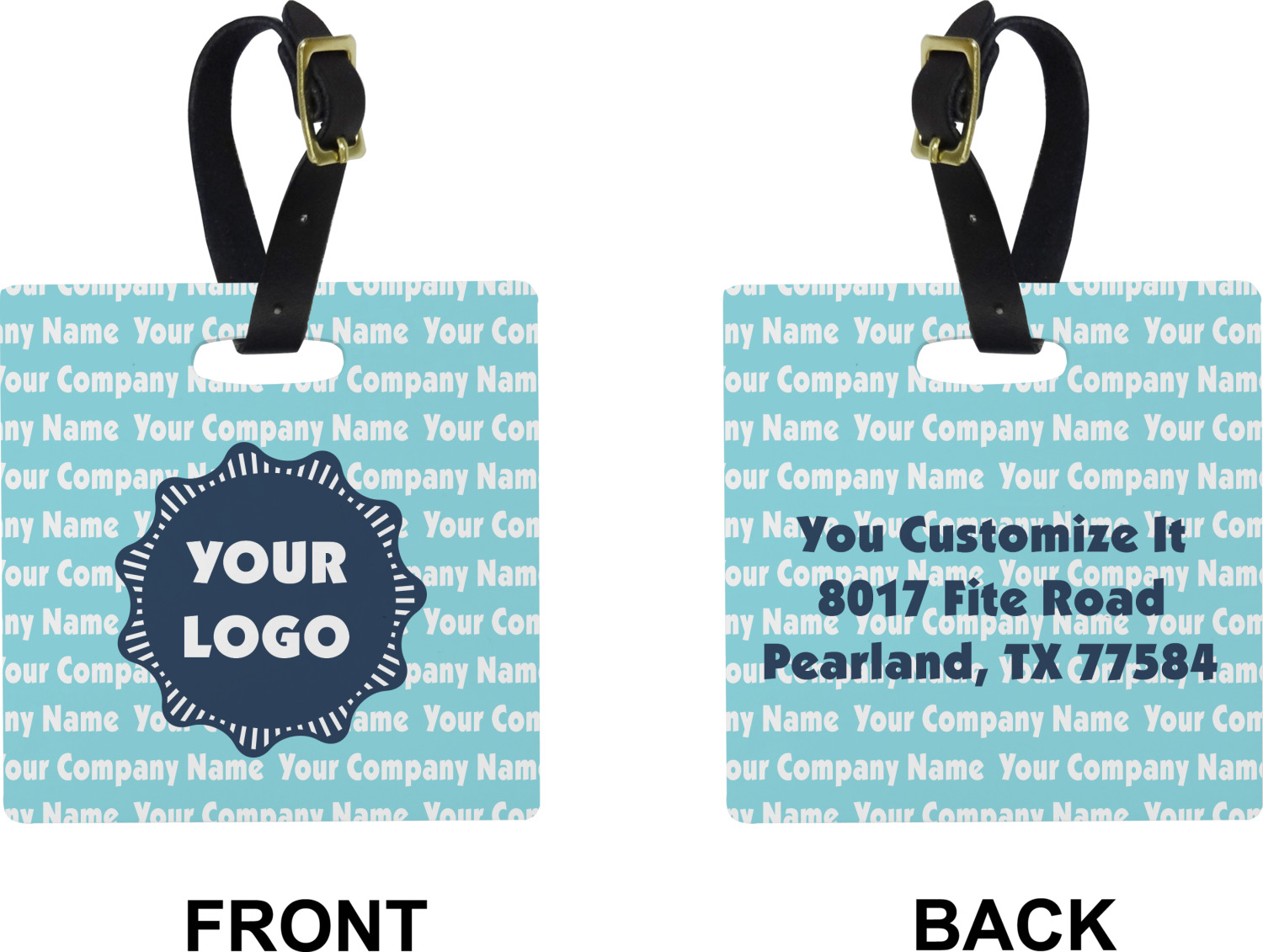 These personalized bag tags are sold in a variety of shapes, so that you may find the product that meets your vision exactly. We sell a round luggage tag, which measures at approximately 4" x 4". Our square luggage tag is about 3.5" x 3.5", while our rectangular version is 2.75" x 4 ".