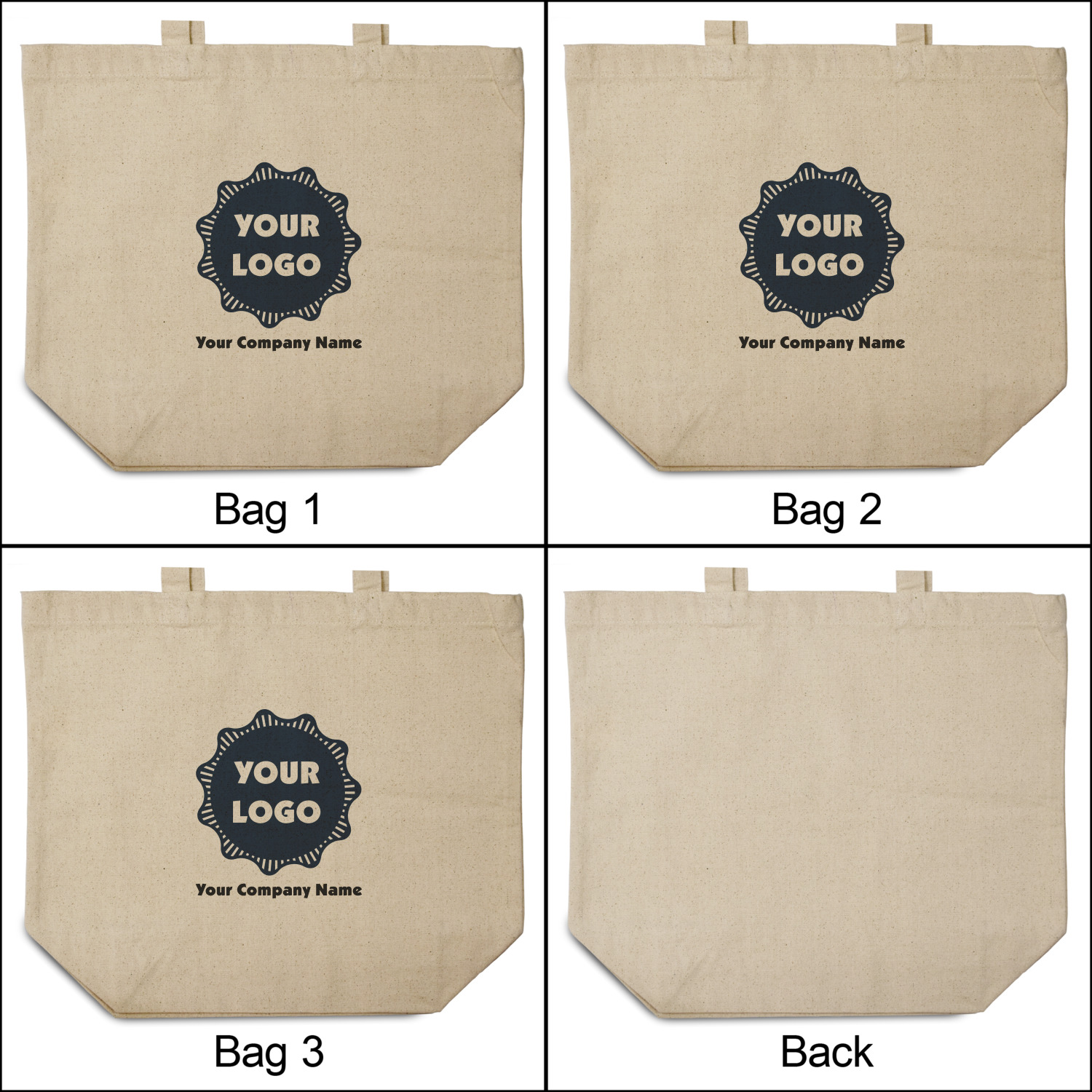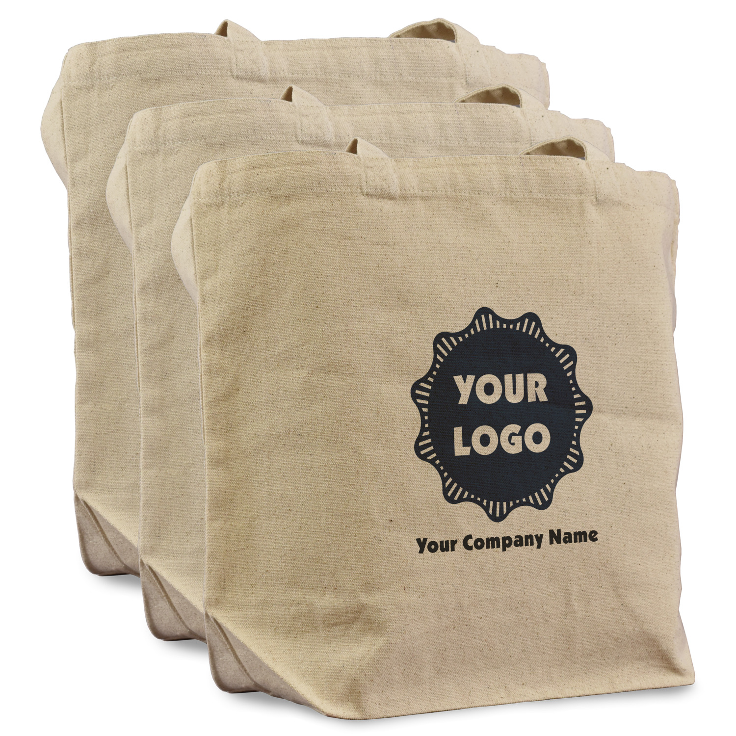 These cotton totes are washable and easy to care for, and they can be folded flat for storage. Your artwork, logo, or photo is printed in full color directly on the cotton tote in the front.