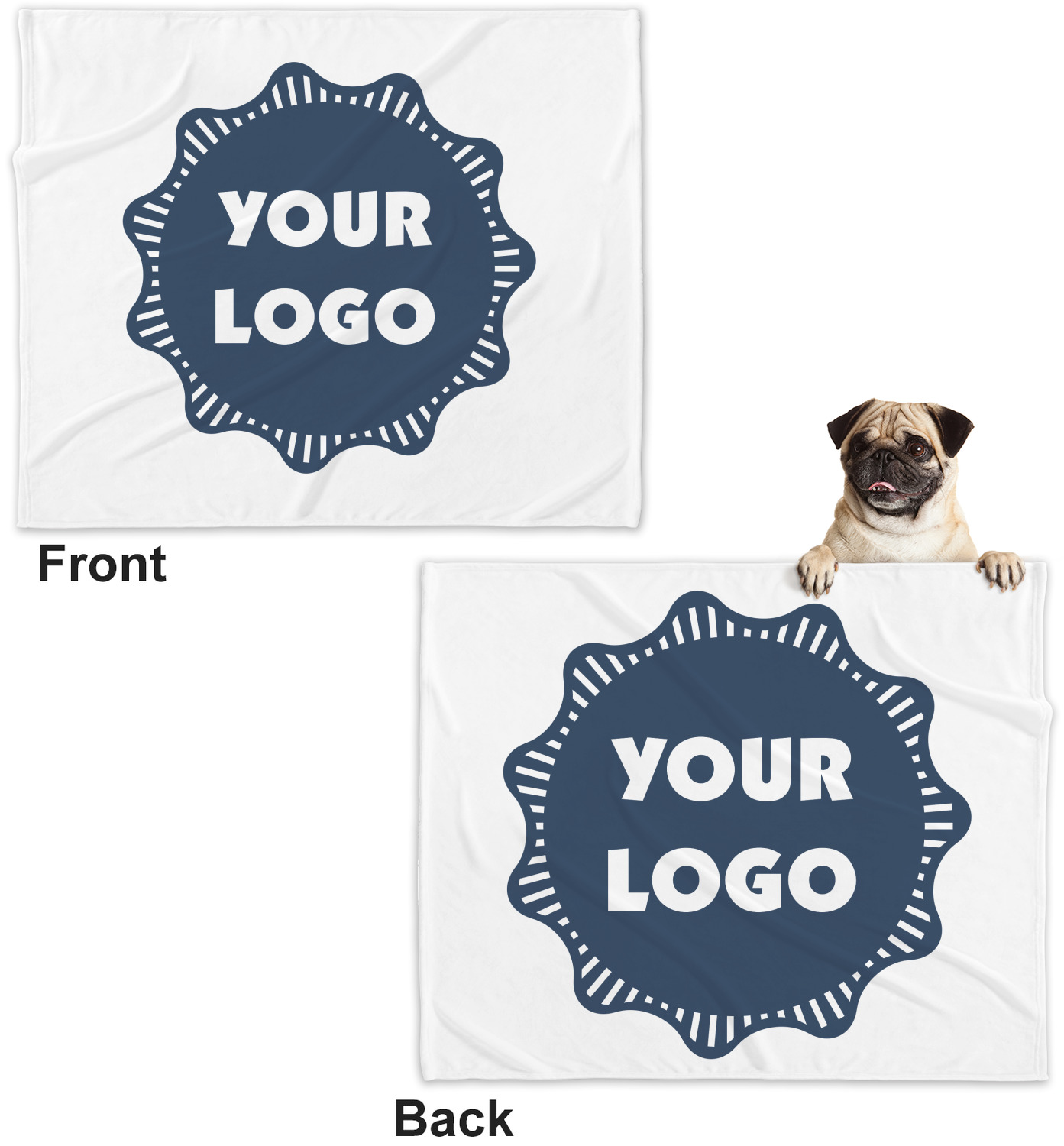 These dog blankets are crafted from a gentle, soft-to-the-touch, minky material. We print your customizations, either matching or differing, on both the top and underside of the blanket. These personalized dog blankets are available in two sizes: regular and large. Our regular size, at 40" x 30", accommodates small and some medium size dogs. At 60" x 50", our large dog blanket is a better fit for bigger breeds. Though specialized for dogs, these blankets still make a thoughtful gift for your favorite feline, or any other pet in mind!