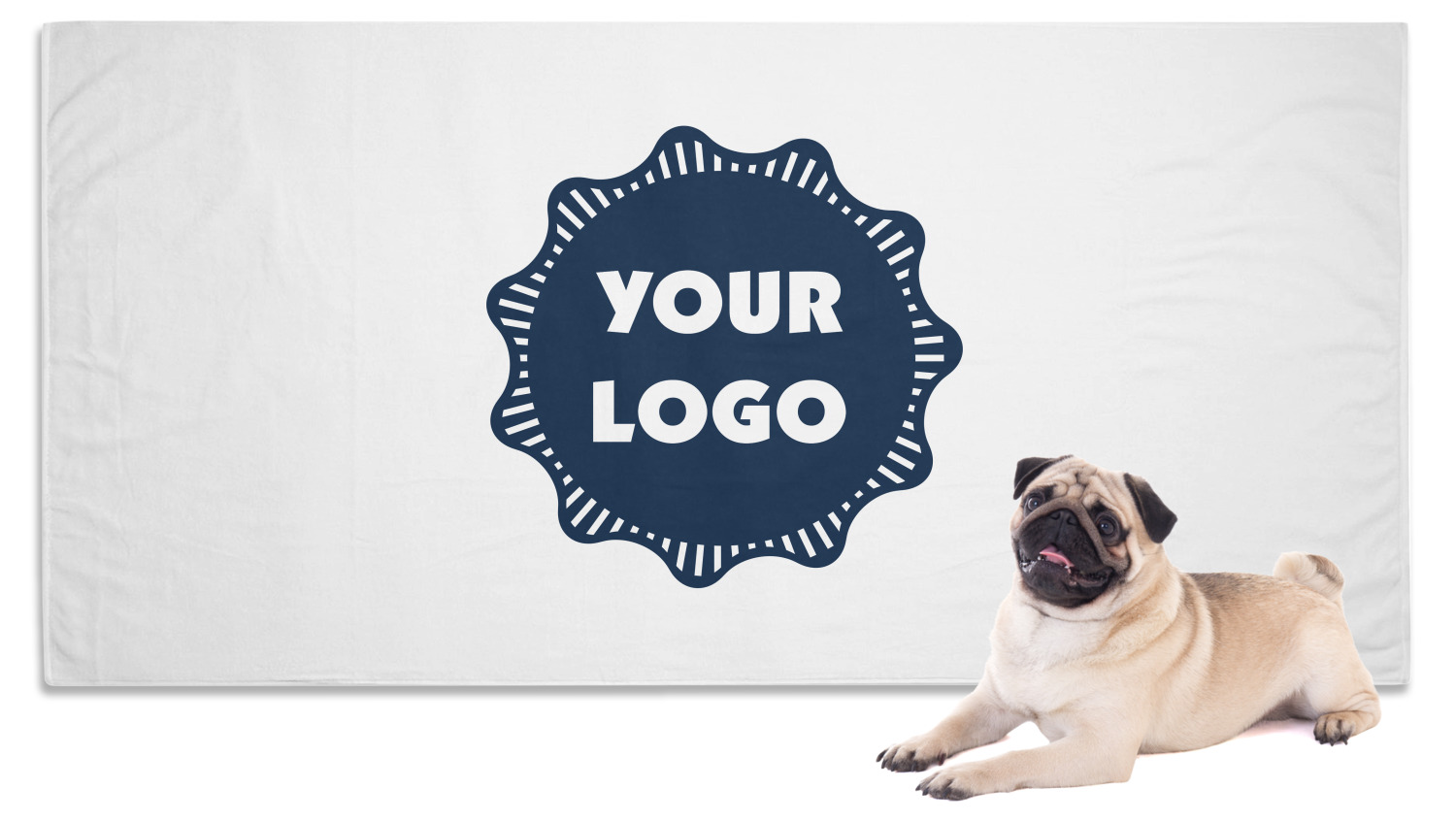 Our custom towels are crafted from a special blend of polyester and polyamide, which contributes to its lightweight, yet thoroughly absorbent nature. We craft it as such to guarantee efficiency as a convenient product; its lightweight nature makes it easy to roll up and carry along, yet it is still able to dry off even the wettest, muddiest pet. It measures at 60" x 30" and is sizable enough to dry off even the largest of pets. With our towel's gentle, soft-to-the-touch material, your pet will be sure to anticipate its warm, dry embrace. We print your personalized design on the front of the towel, while the back is white.