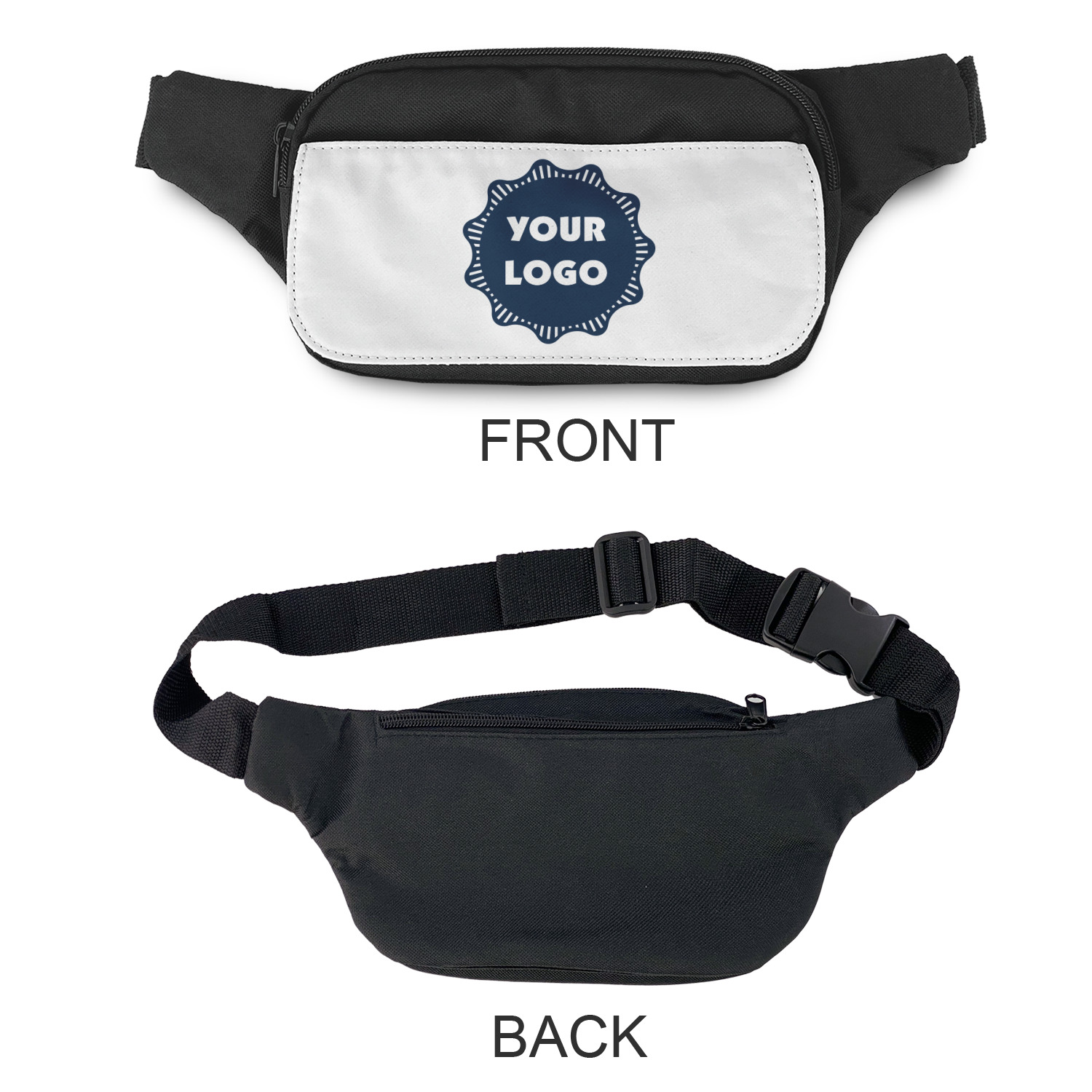 This is a unisex fanny pack - suitable for both men & women. The front flap is printed in full color with your design. You can add a photo, logo or any image that you would like. We offer a number of design templates that can be customized by you to your liking.