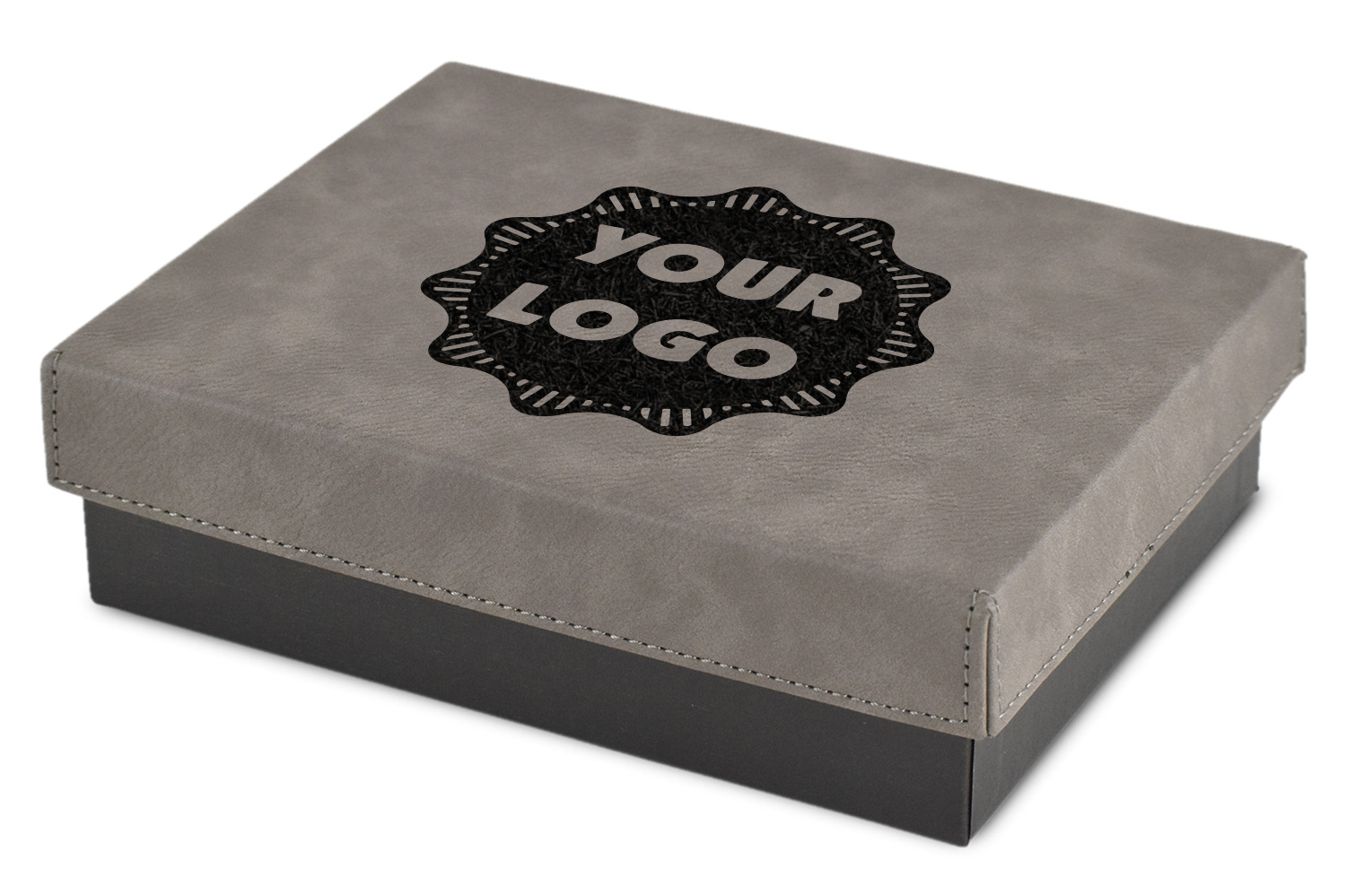 These gift boxes are available in 3 different sizes to accommodate various sized gifts. Available in gray as a neutral color for any occasion as well as to showcase your design boldly. Engraved with a laser this high quality paper board and faux leather gift box is unique and makes any gift stand out.