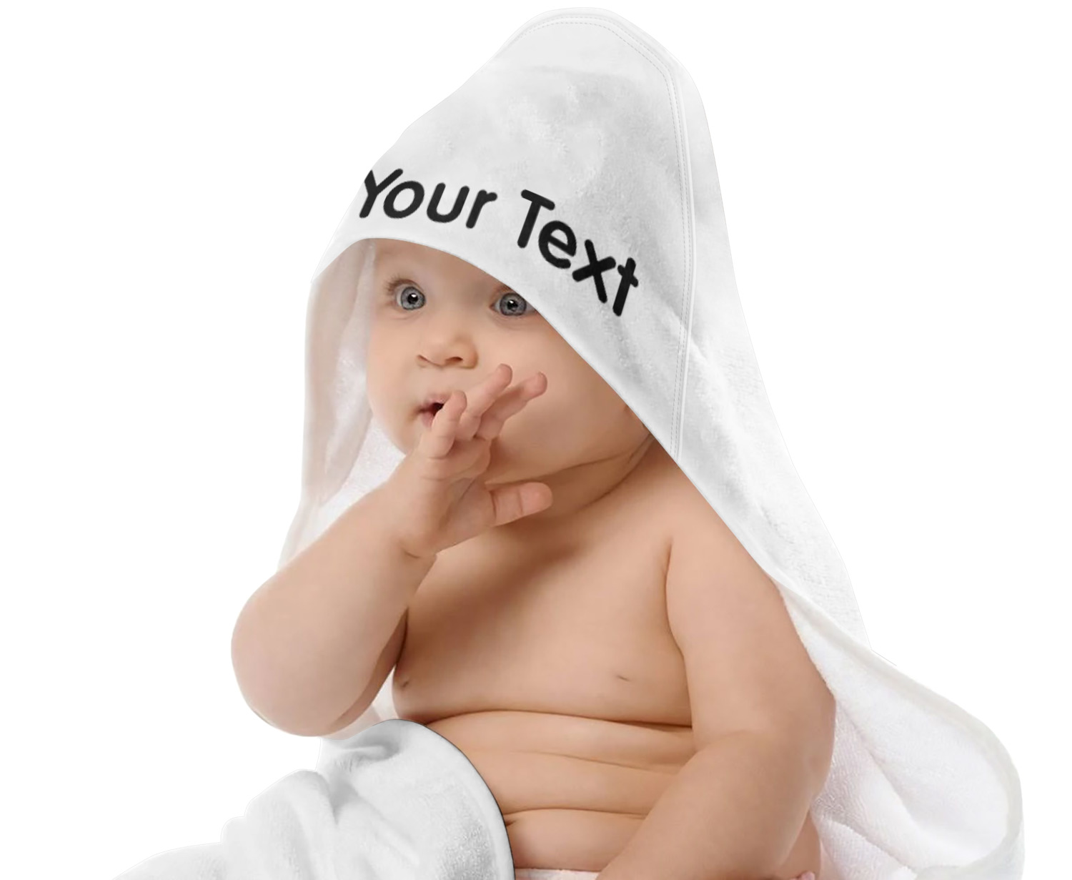 This baby towel is made with a plush microfiber velour and cotton terry. and thus will be soft and gentle against your newborn's skin, but also, very absorbent. Your customization is printed across the front & the hood, while the inside is a classy white.