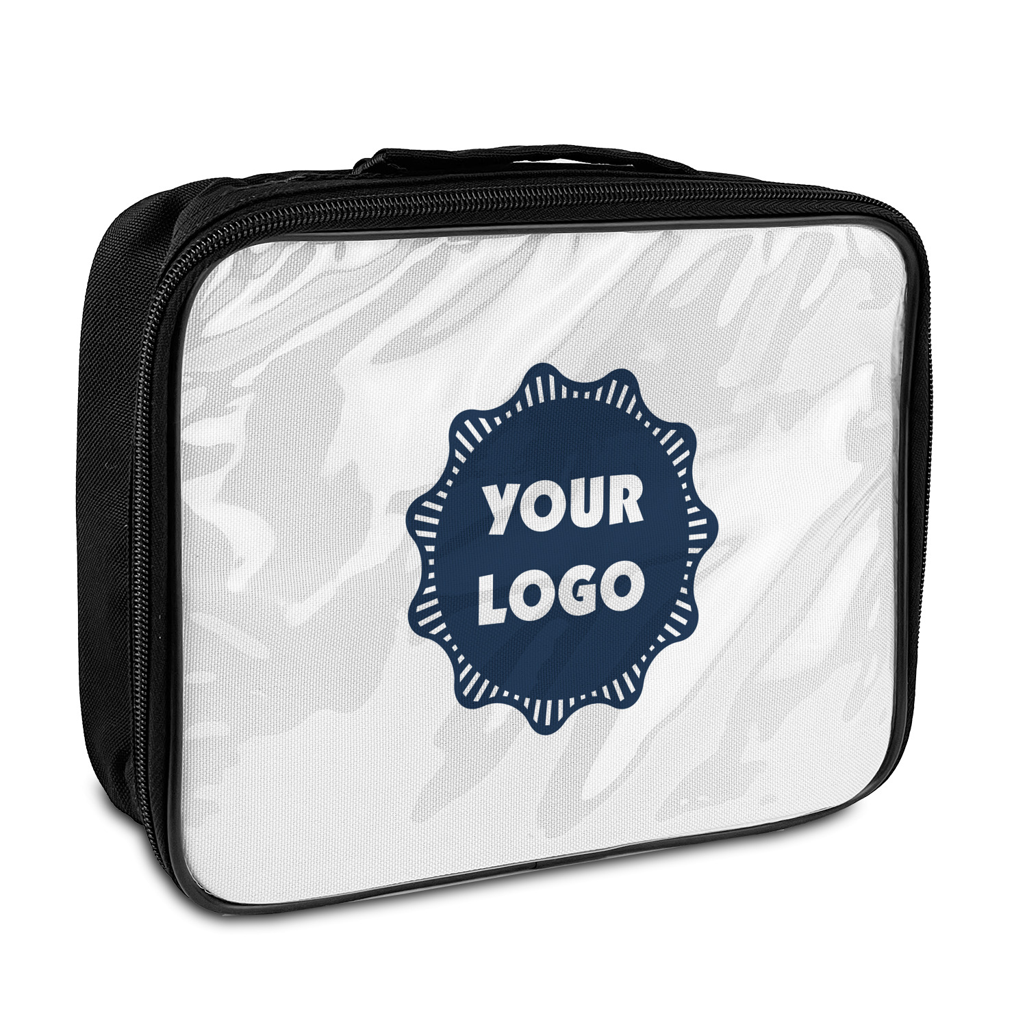 The exterior these personalized lunch bags are fabricated from a thick, durable nylon, while the inside features an effective thermal insulation. A black zipper lines all edges of the lunch bag. The front panel has a clear vinyl protective covering over the customized panel to ensure it stays clean and nice looking for a long time.