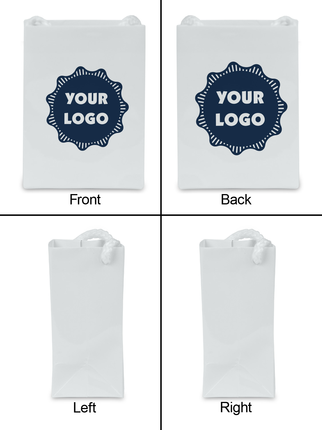 These jewelry gift bags are available in two finishes - matte or gloss. The are digitally printed in full color, then cut down to size, scored & folded. A single handle is attached.