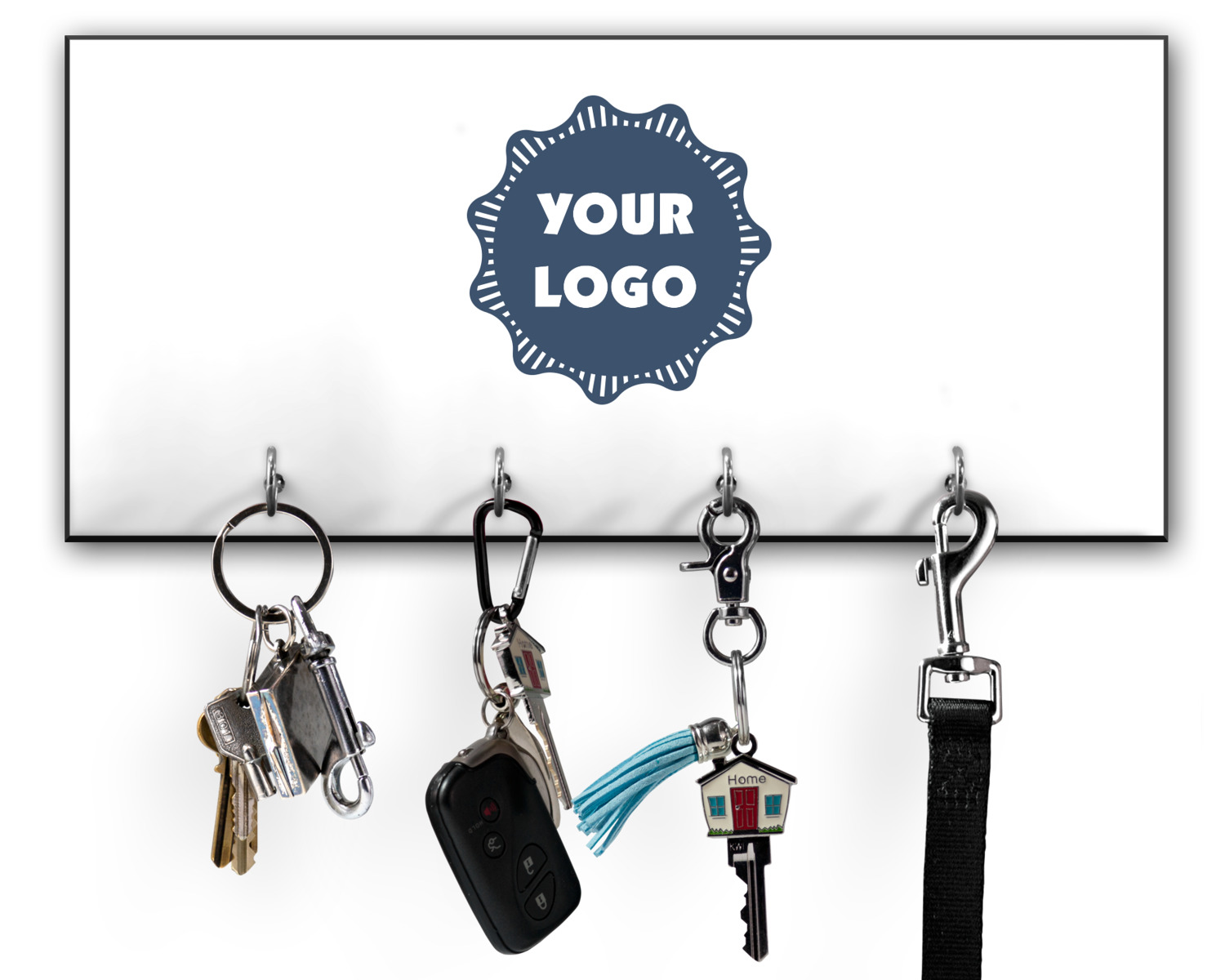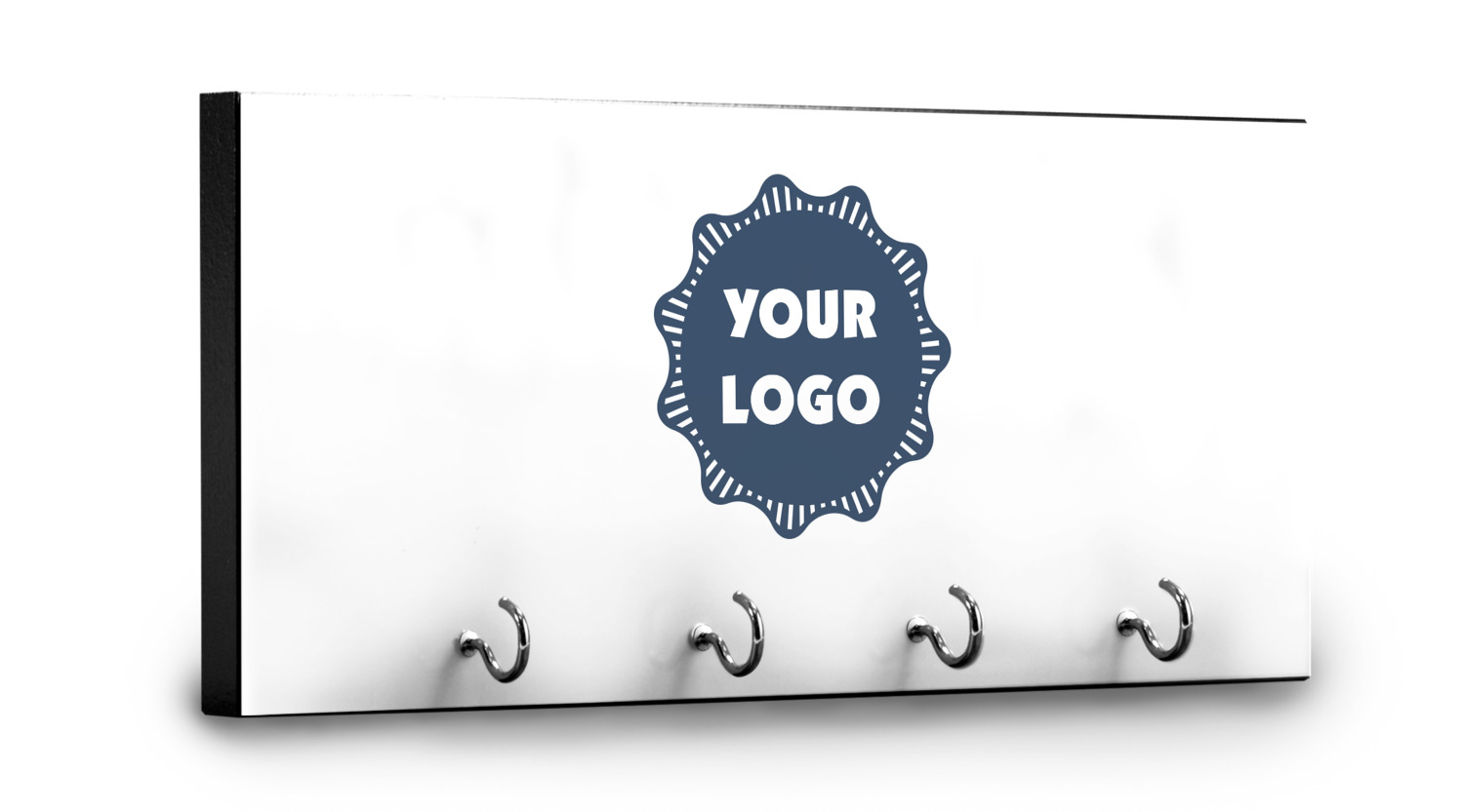 This 11" x 5" key hanger is made of sturdy wood and has four metal hooks lining the bottom. This is the perfect size for a family with several drivers. Not only can you hang keys on it though, but pet leashes and other small items. The board is black on the sides and back and is printed with the design of your choice on the front.