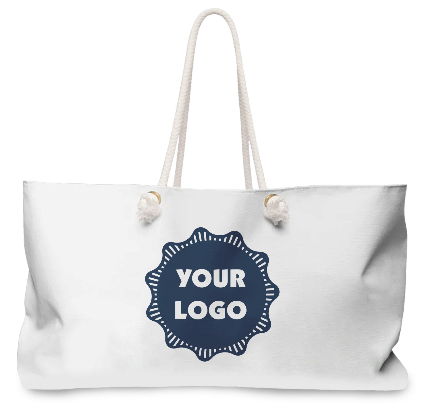 Our oversized weekender tote with rope handles is perfect for your weekend at the beach or on the town. This large tote are 24" W X 13" H, with a 5" gusset and a 27" thick rope handles with a knot that is put through a grommeted brass hole.